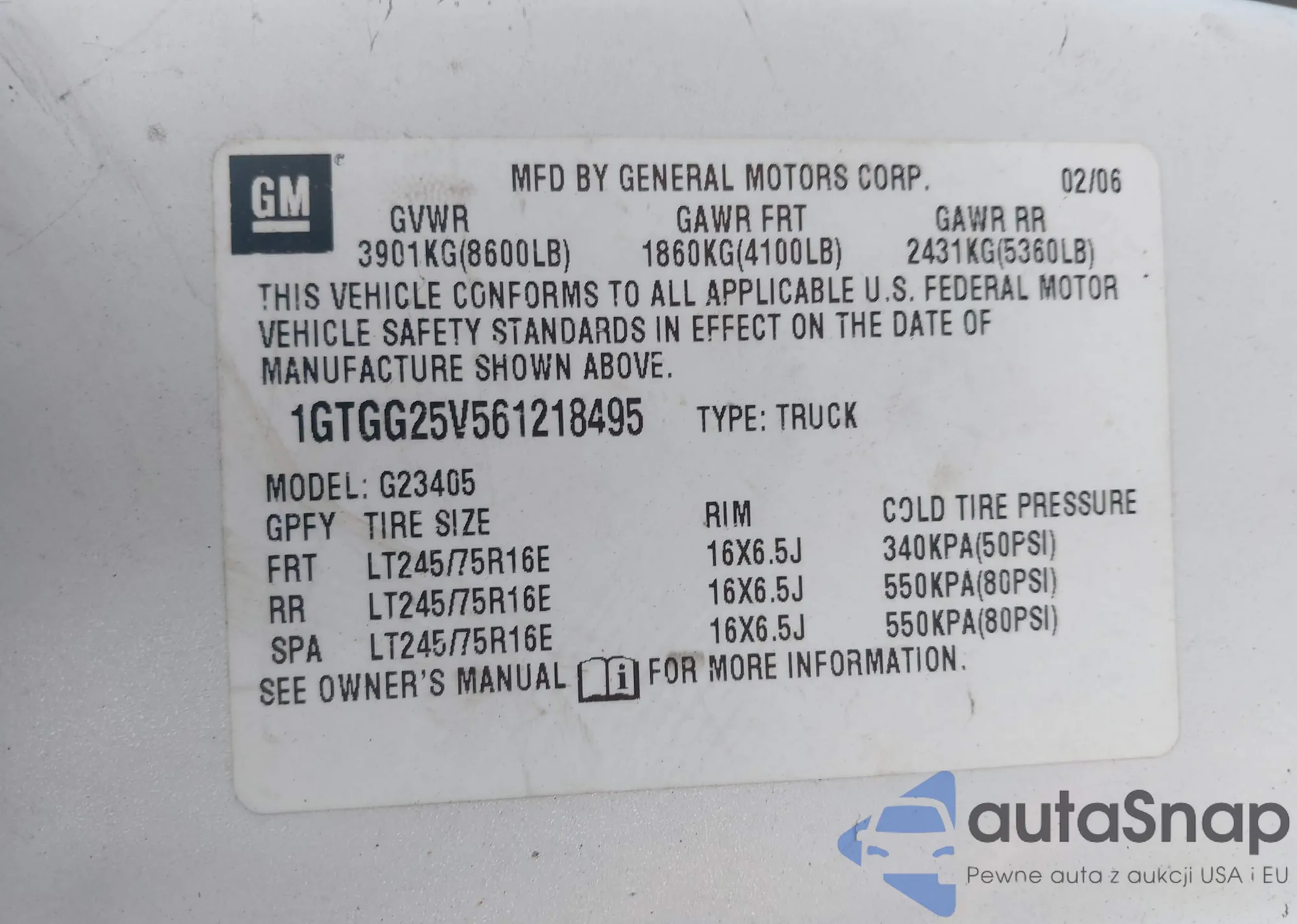 • VIN 1GTGG25V561218495