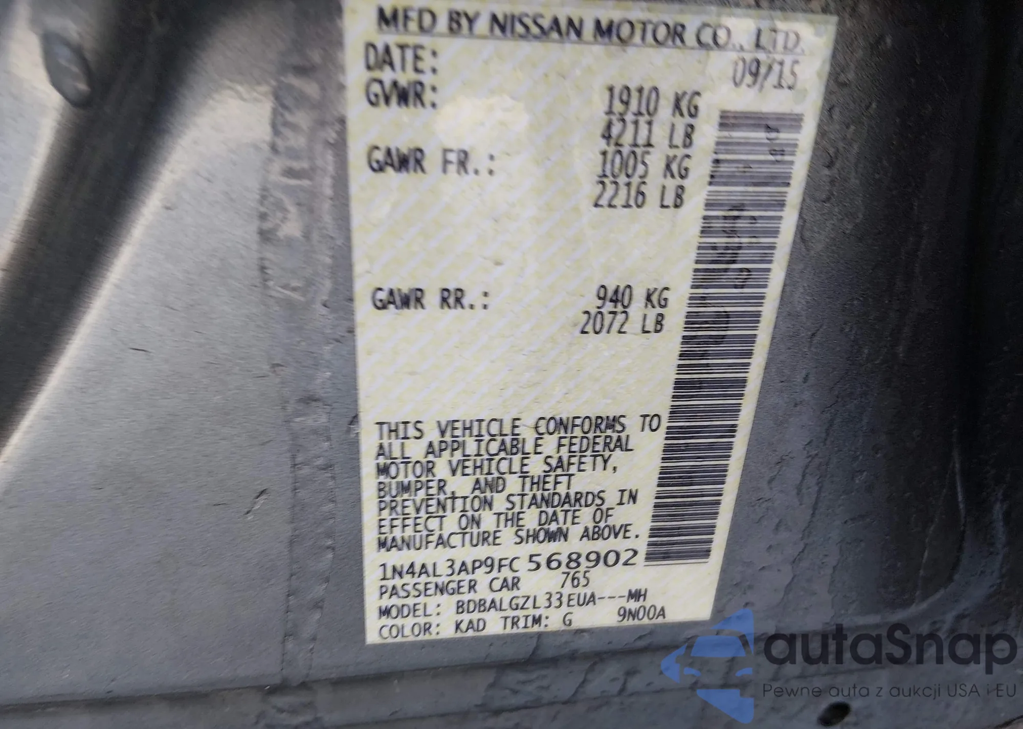 LOT: 44221996 VIN: WBAWR33549P343291