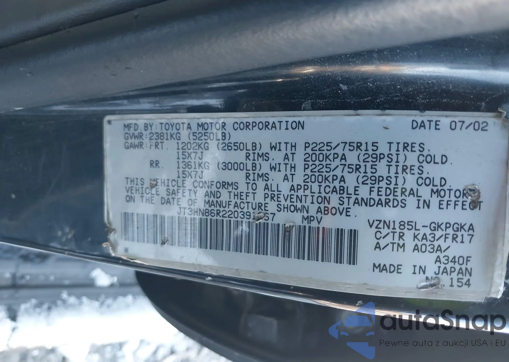 LOT: 44198040 VIN: 5J6YH285X3L004707
