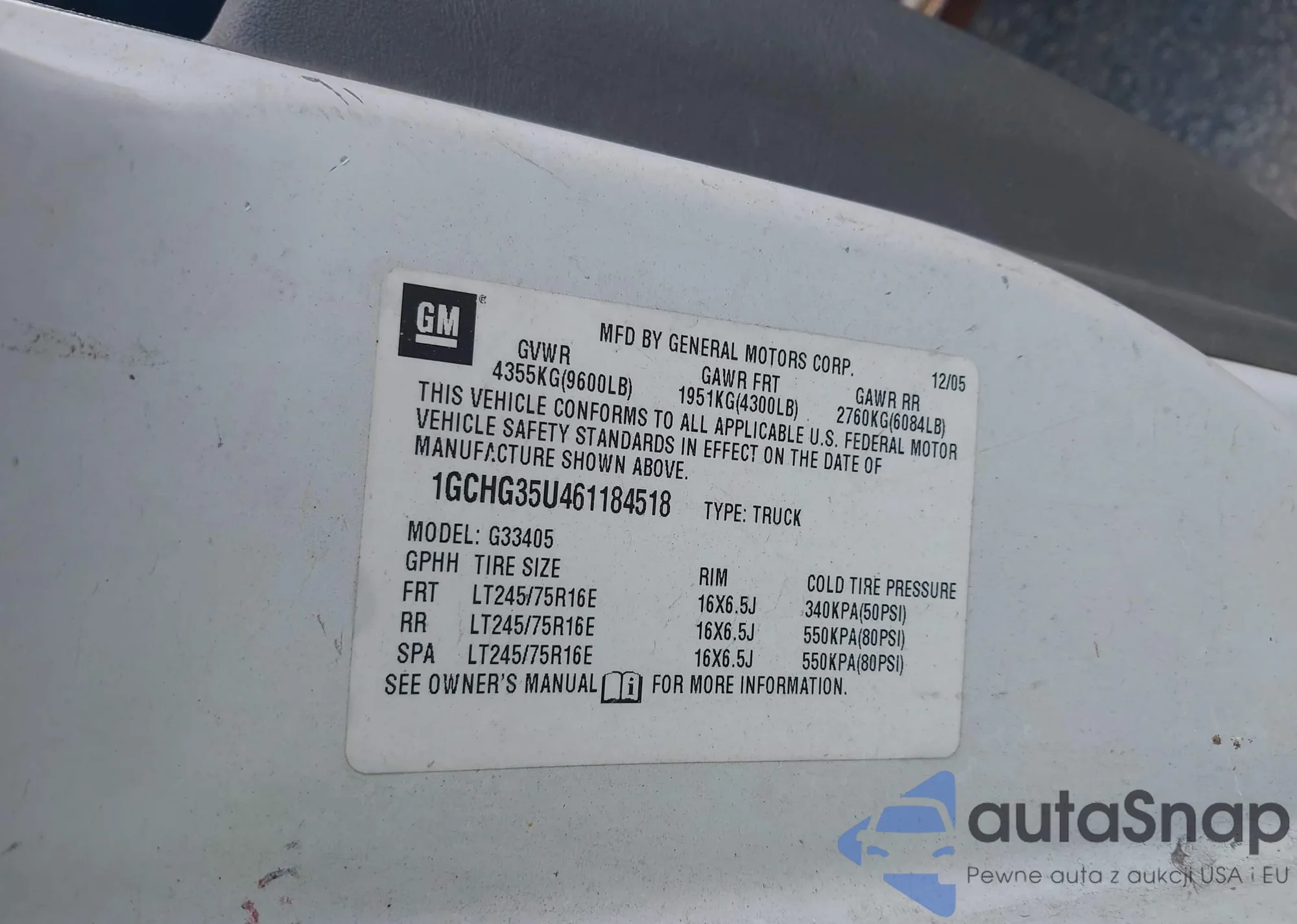 • VIN 1GCHG35U461184518