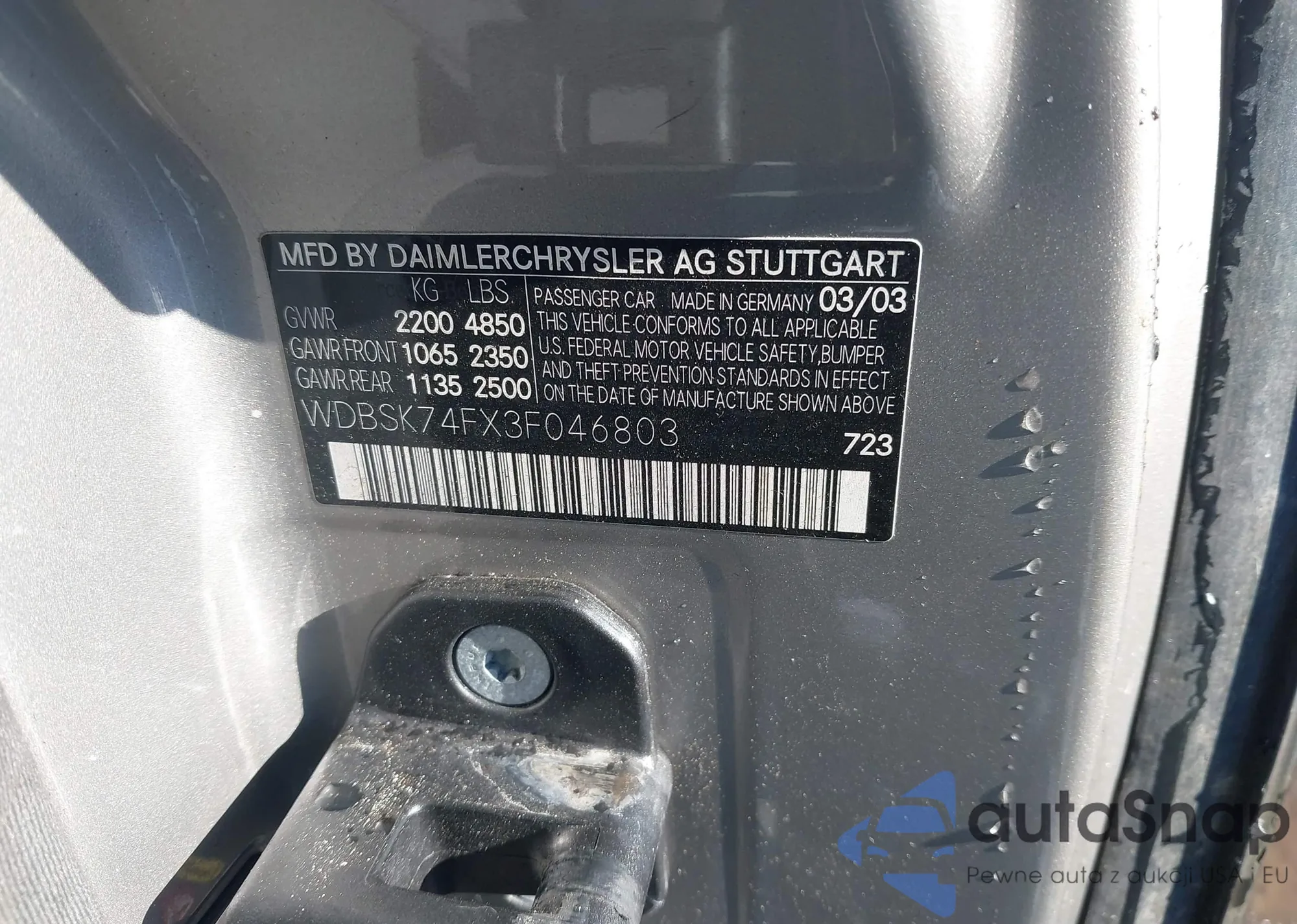 • VIN WDBSK74FX3F046803