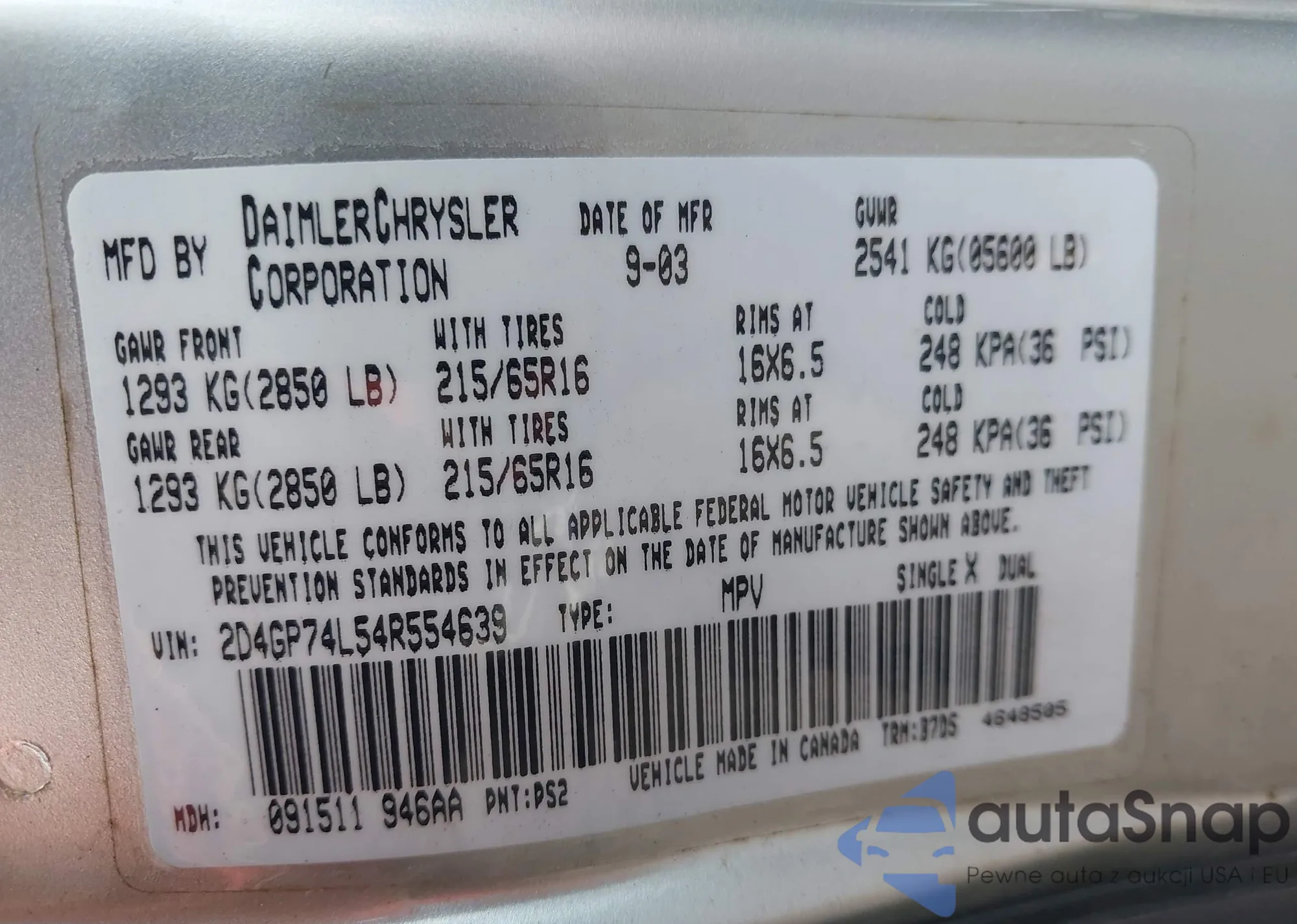 • VIN 2D4GP74L54R554639