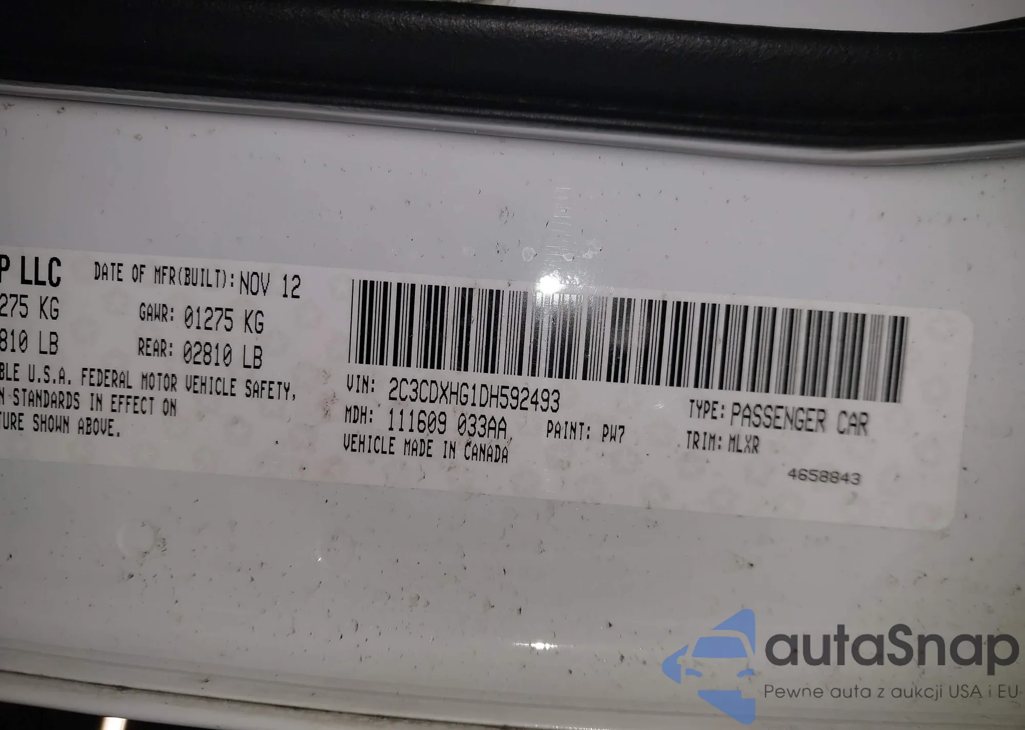 • VIN 2C3CDXHG1DH592493