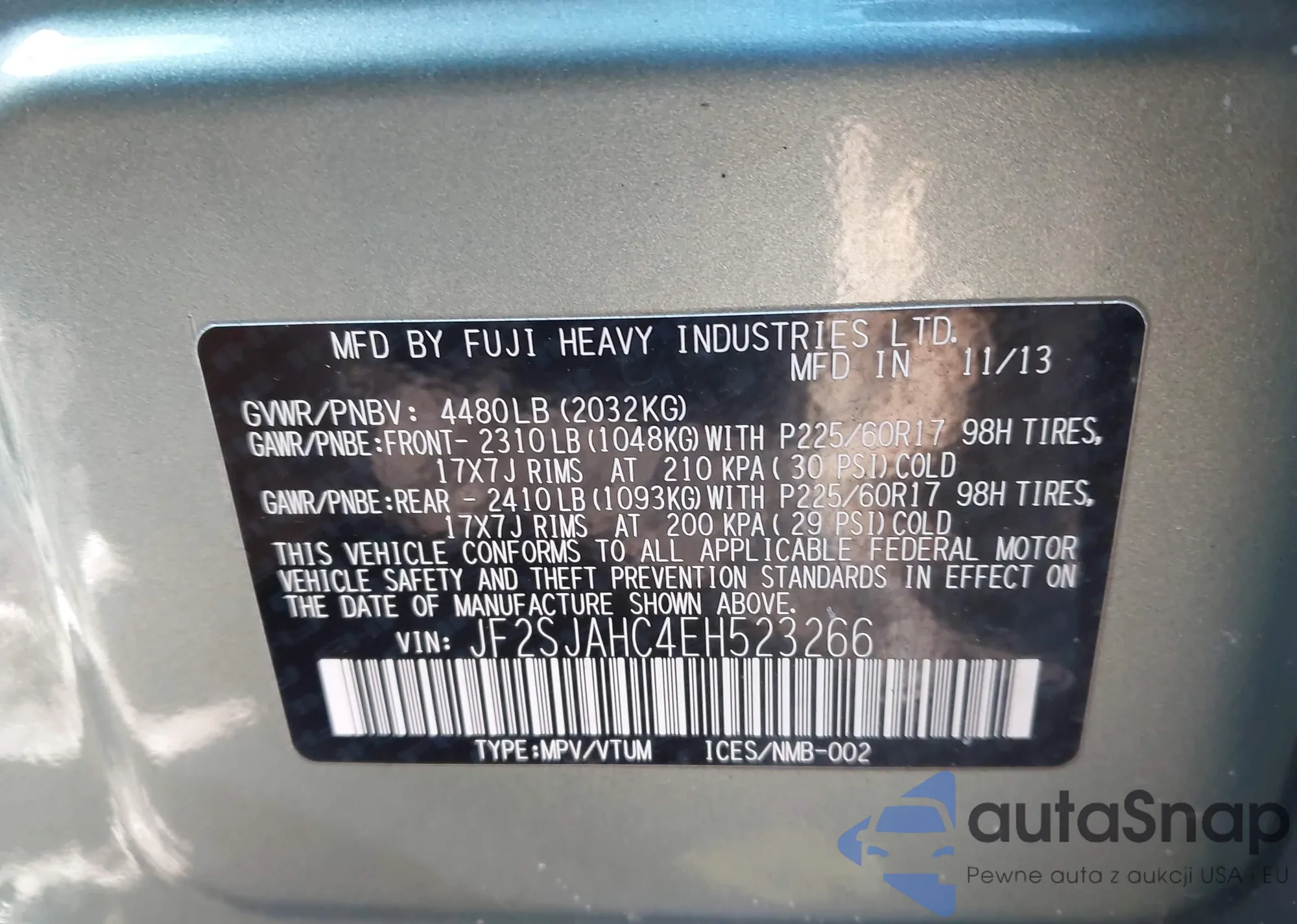 • VIN JF2SJAHC4EH523266