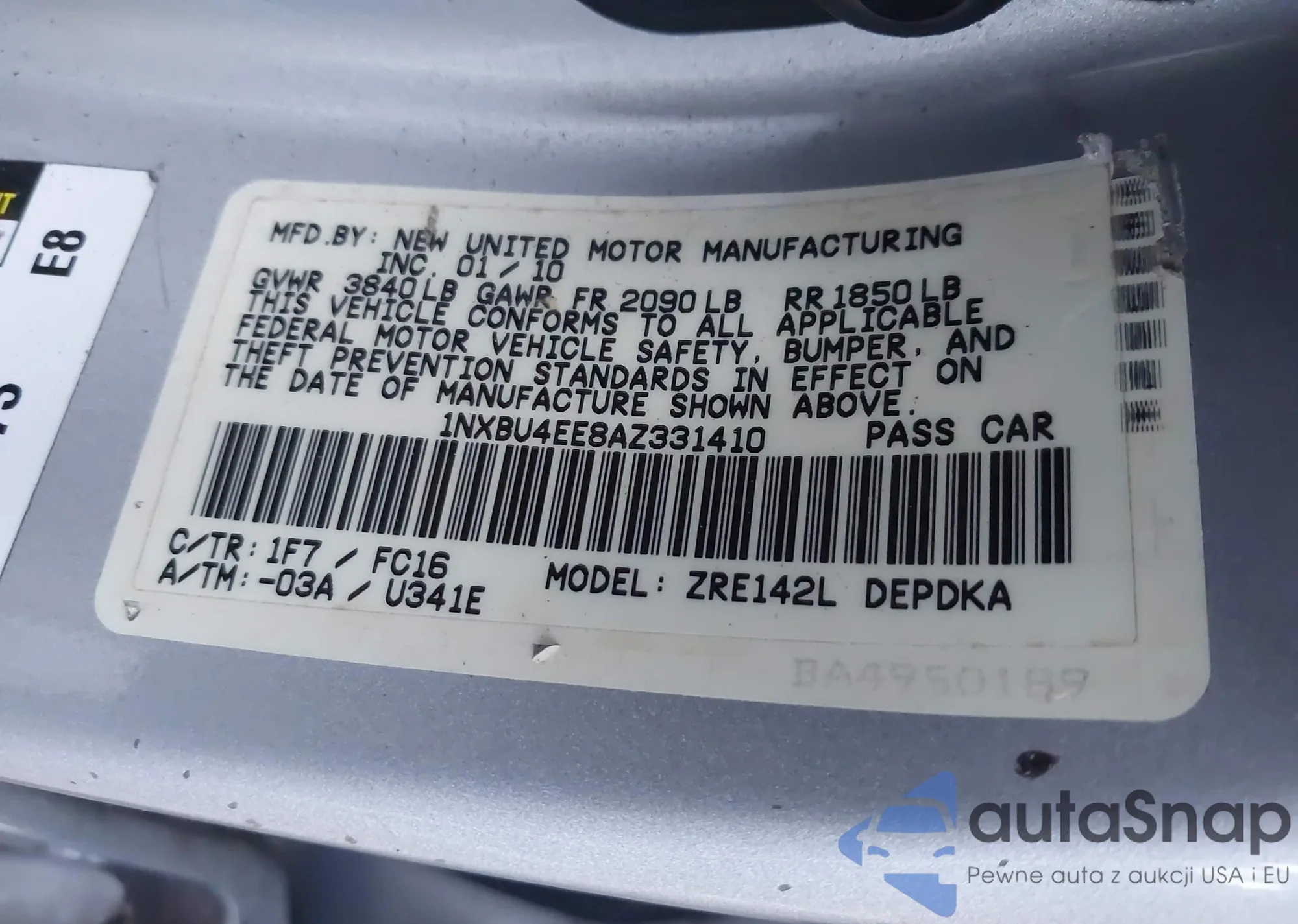 • VIN 4T1BB3EK8AU112792