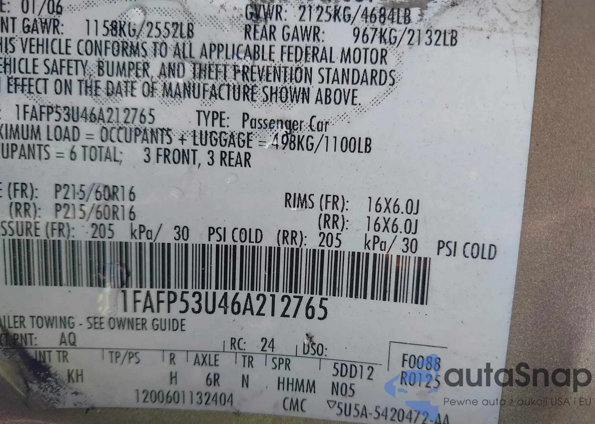 • VIN 1FAHP3FN4AW122853