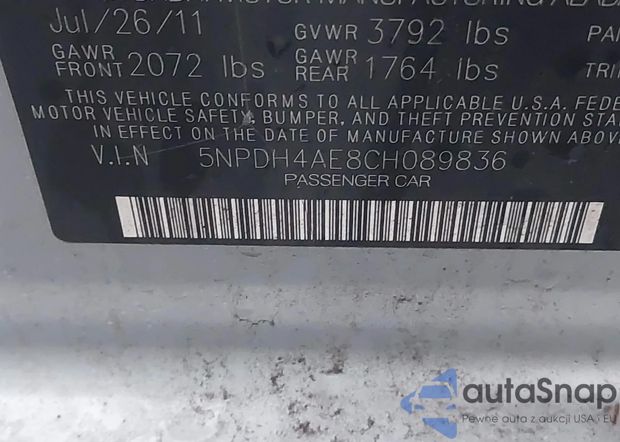 LOT: 43945117 VIN: 5NPDH4AE8CH089836