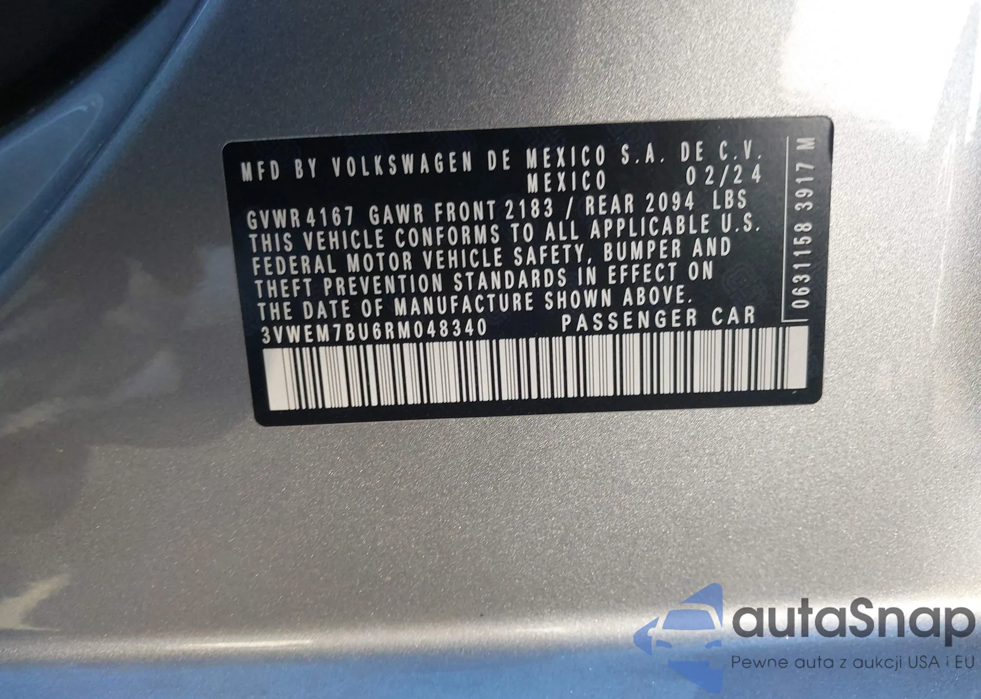 LOT: 43690330 VIN: JTDAAAAF6S3036609