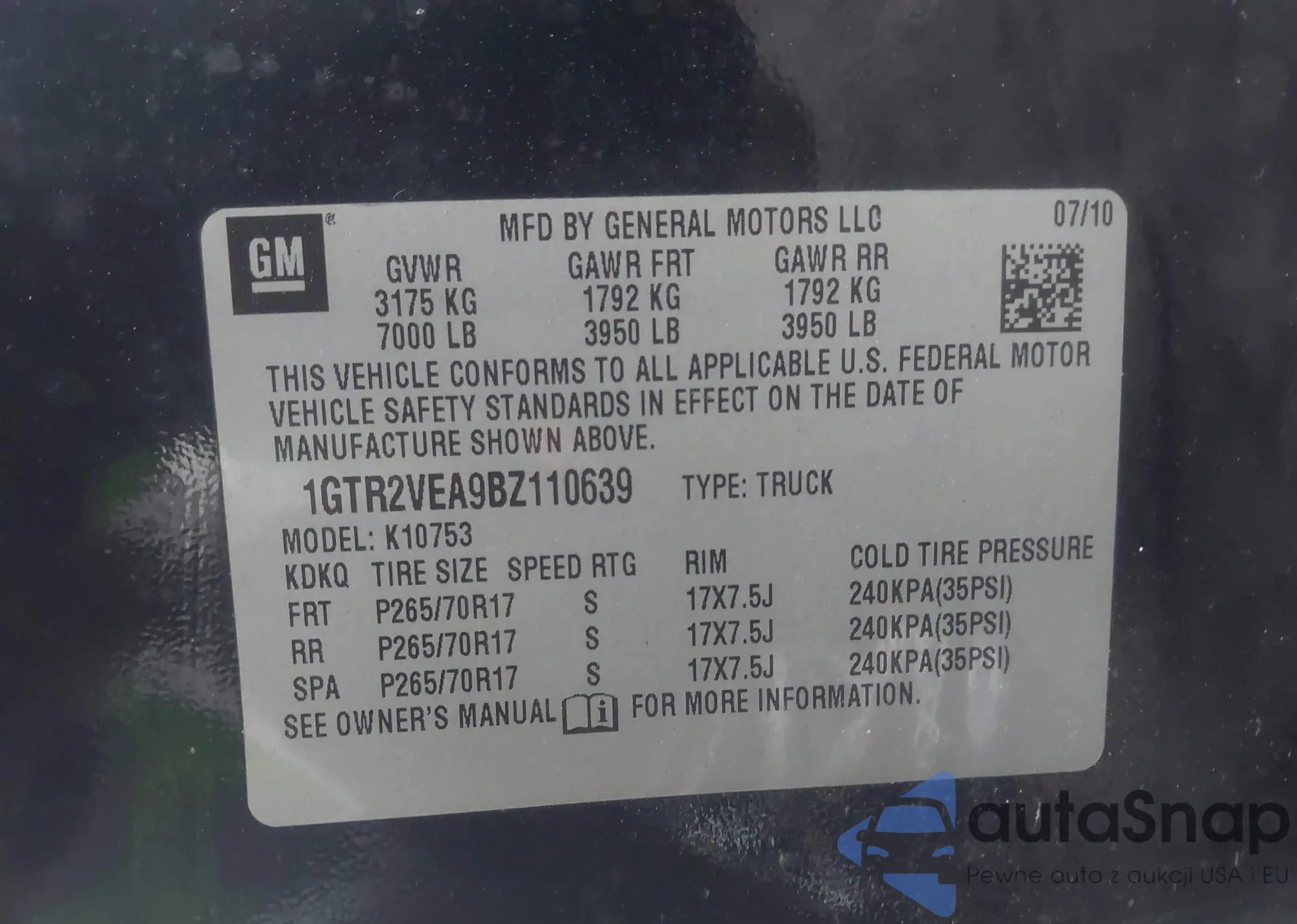 • VIN 1GTR2VEA9BZ110639