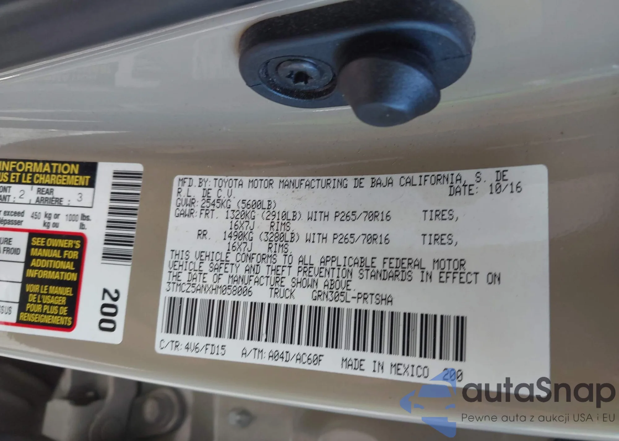 • VIN 3TMCZ5ANXHM058006
