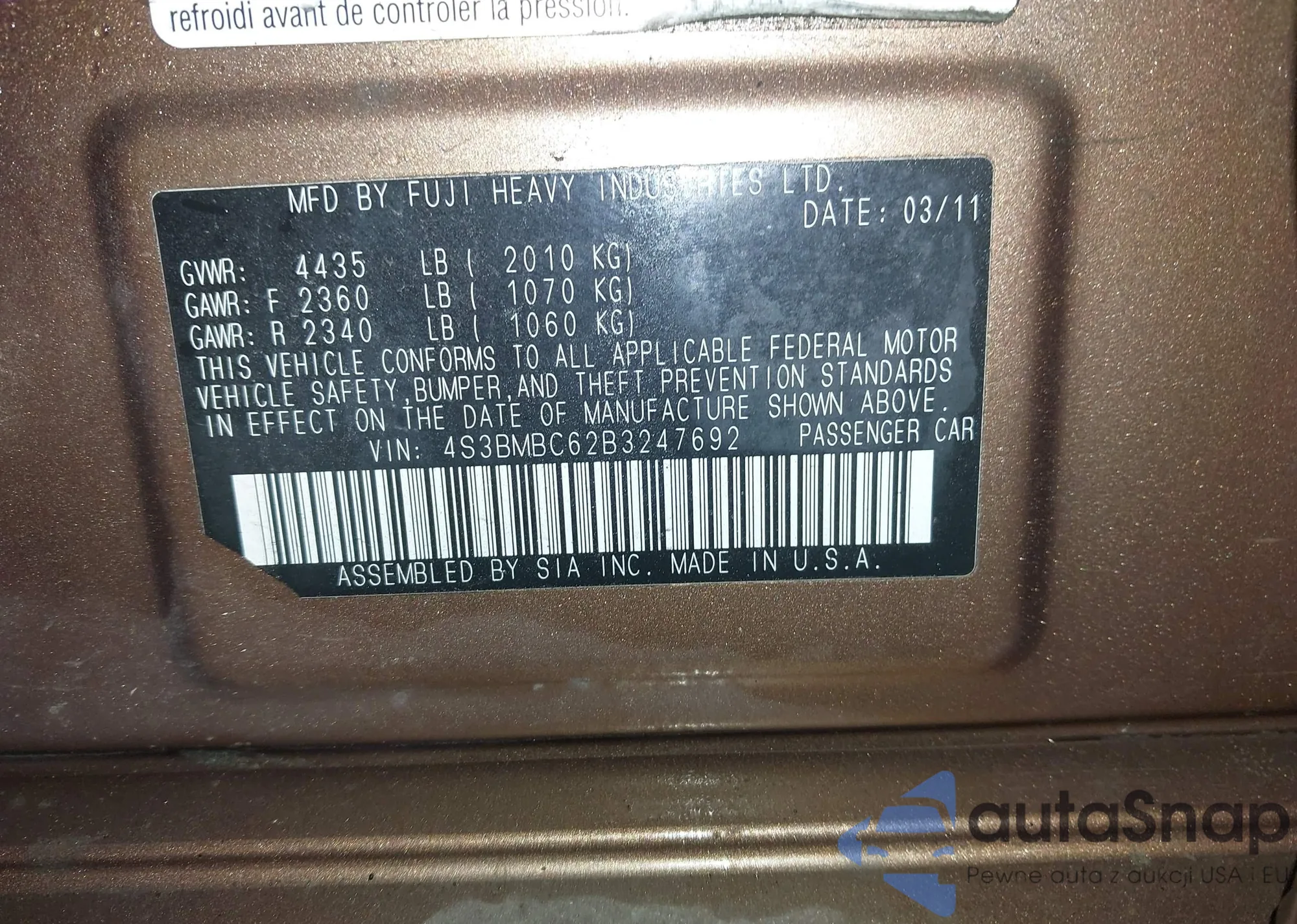• VIN JN8AZ1MW5BW173404