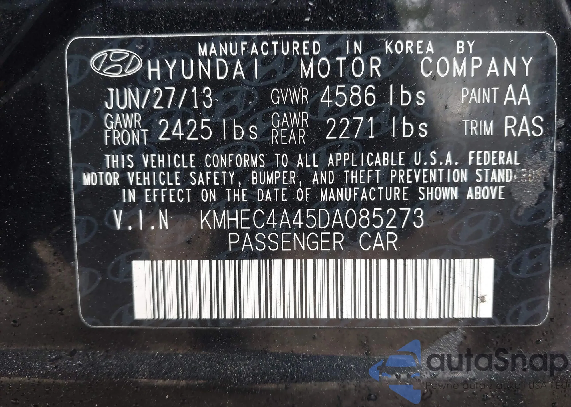 • VIN KMHEC4A45DA085273