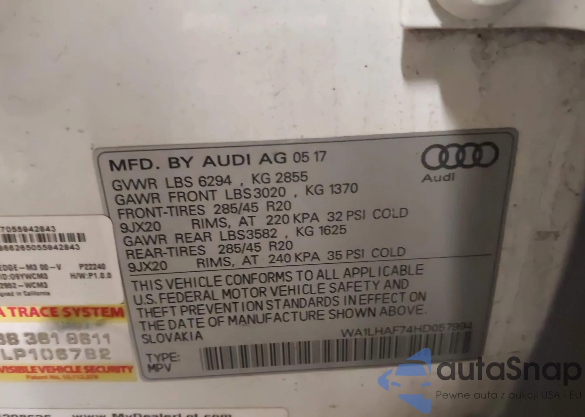 LOT: 44118414 VIN: WA1LHAF74HD057994