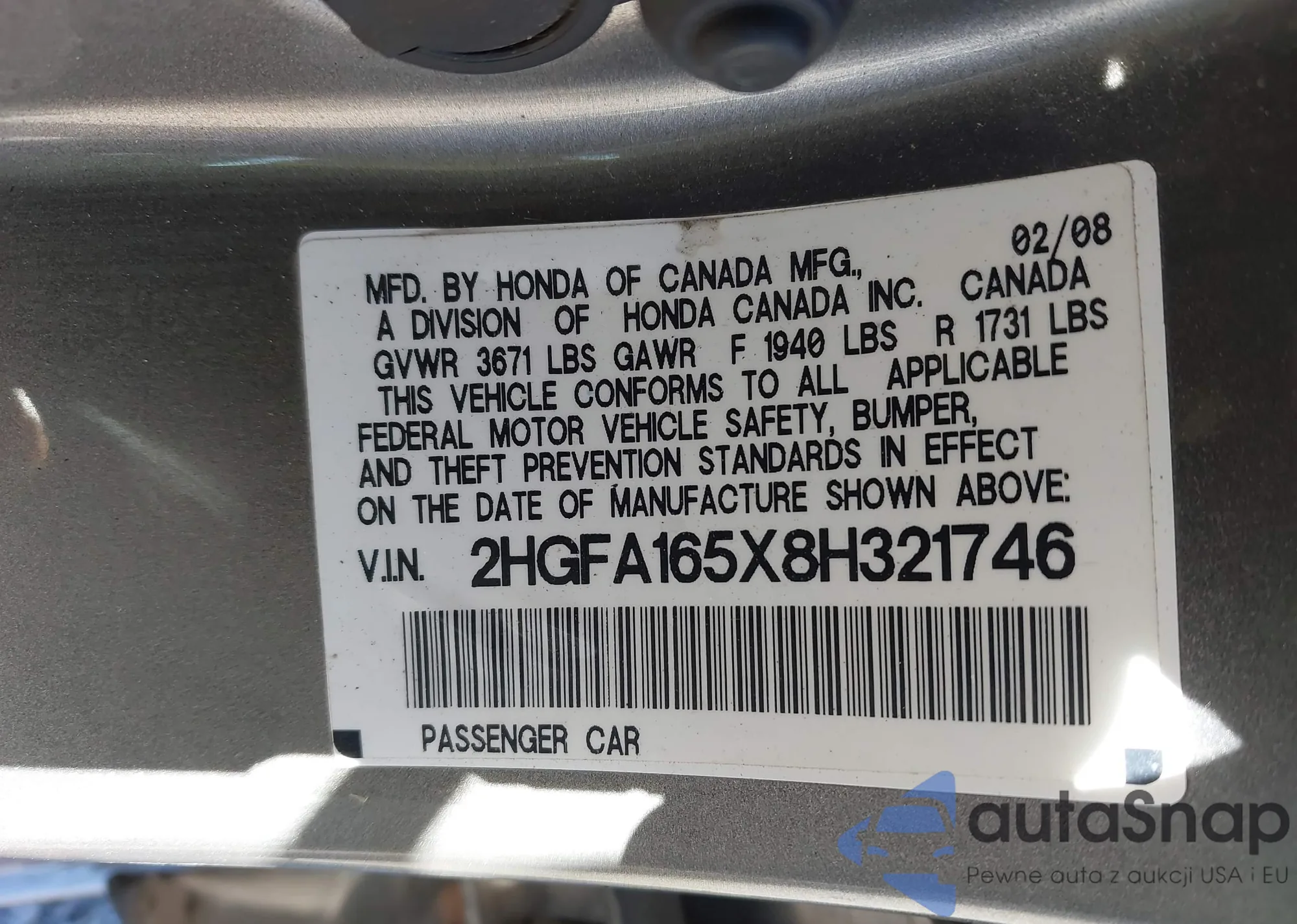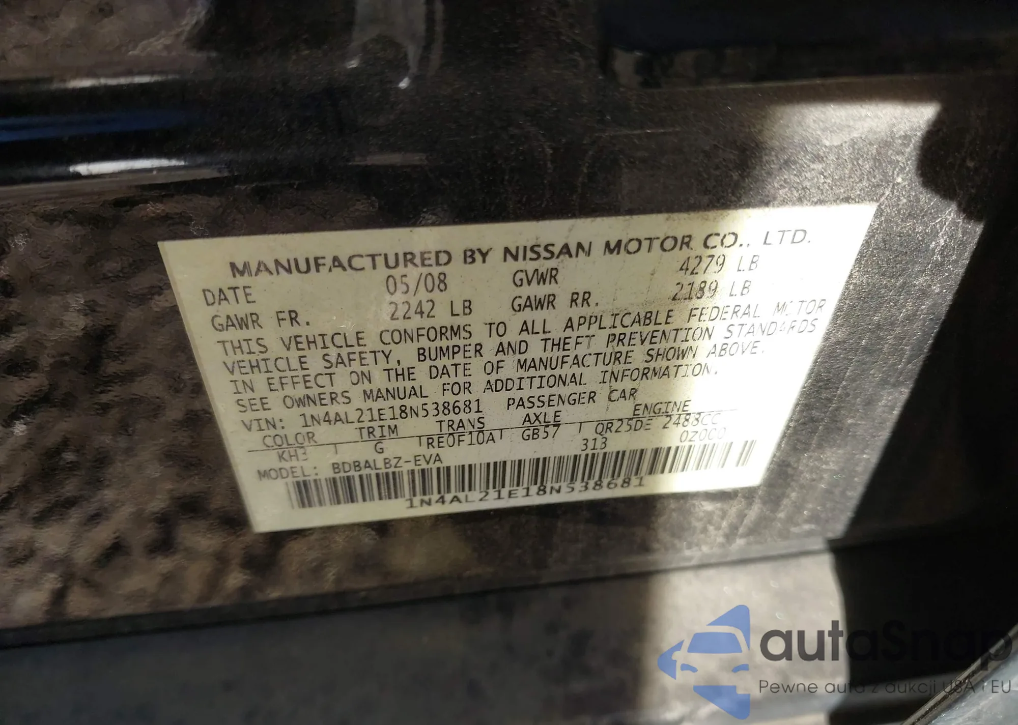 LOT: 44143374 VIN: 1N4AL21E18N538681