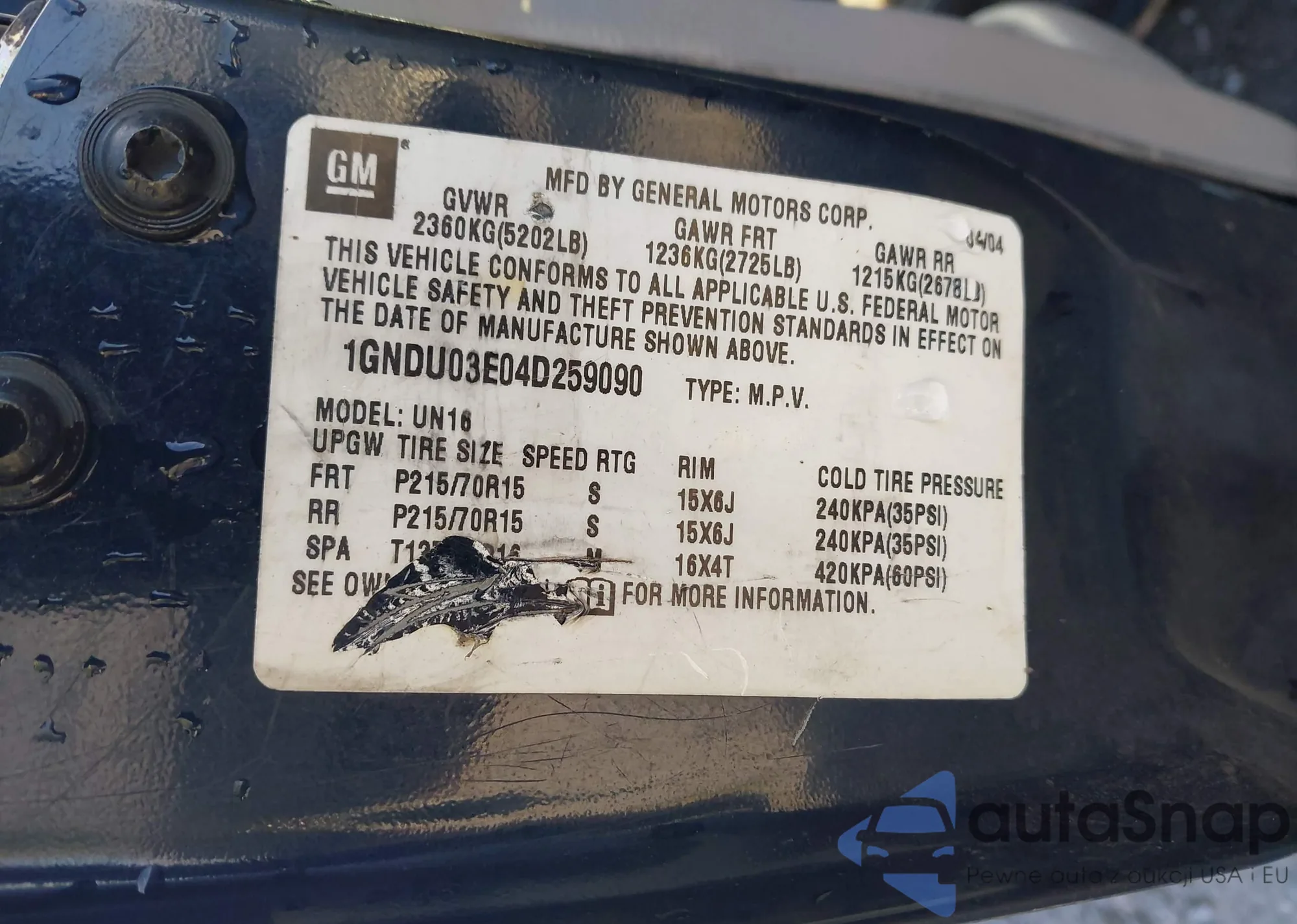 • VIN 1GNDU03E04D259090