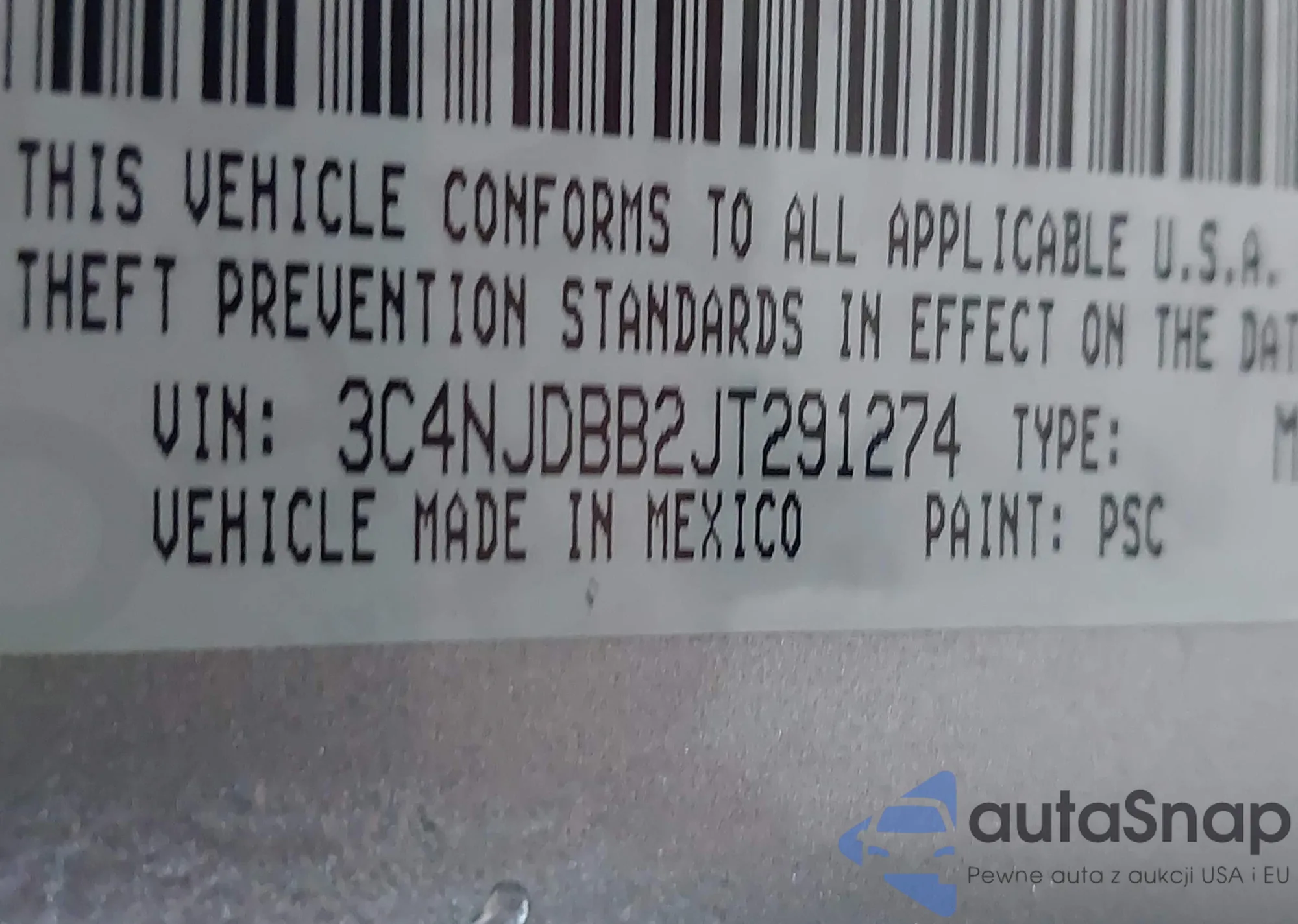 • VIN 3C4NJDBB2JT291274