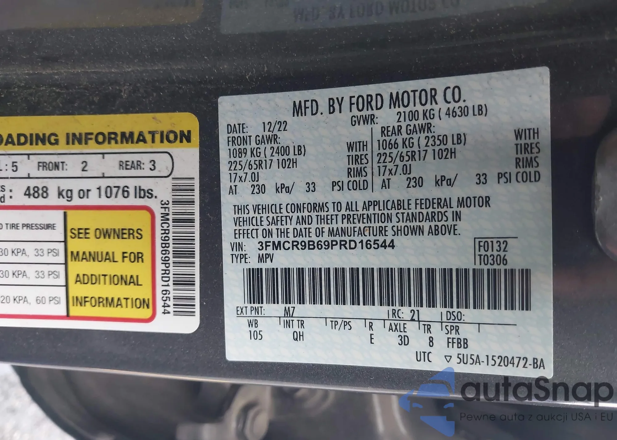 • VIN 3FMCR9B69PRD16544