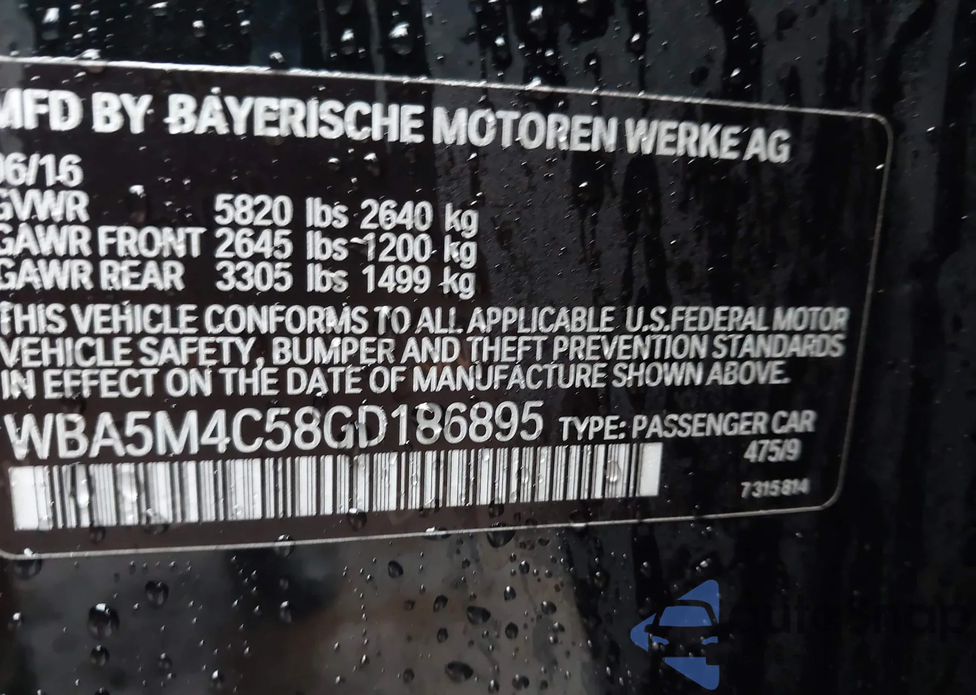 • VIN WBA7T2C01LCD59602