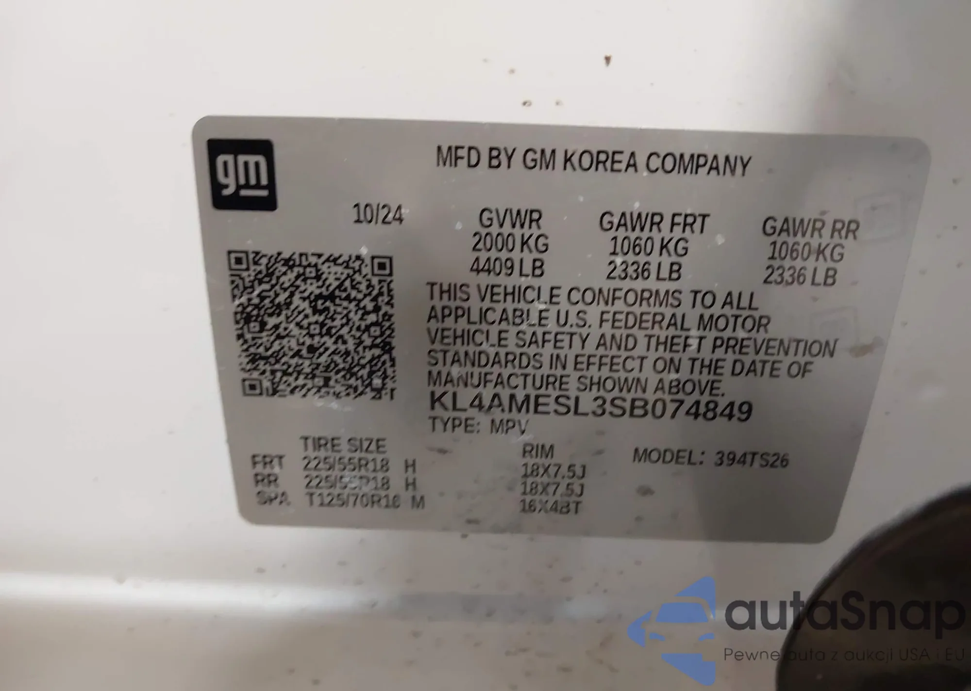 LOT: 43941926 VIN: KL4AMESL3SB074849