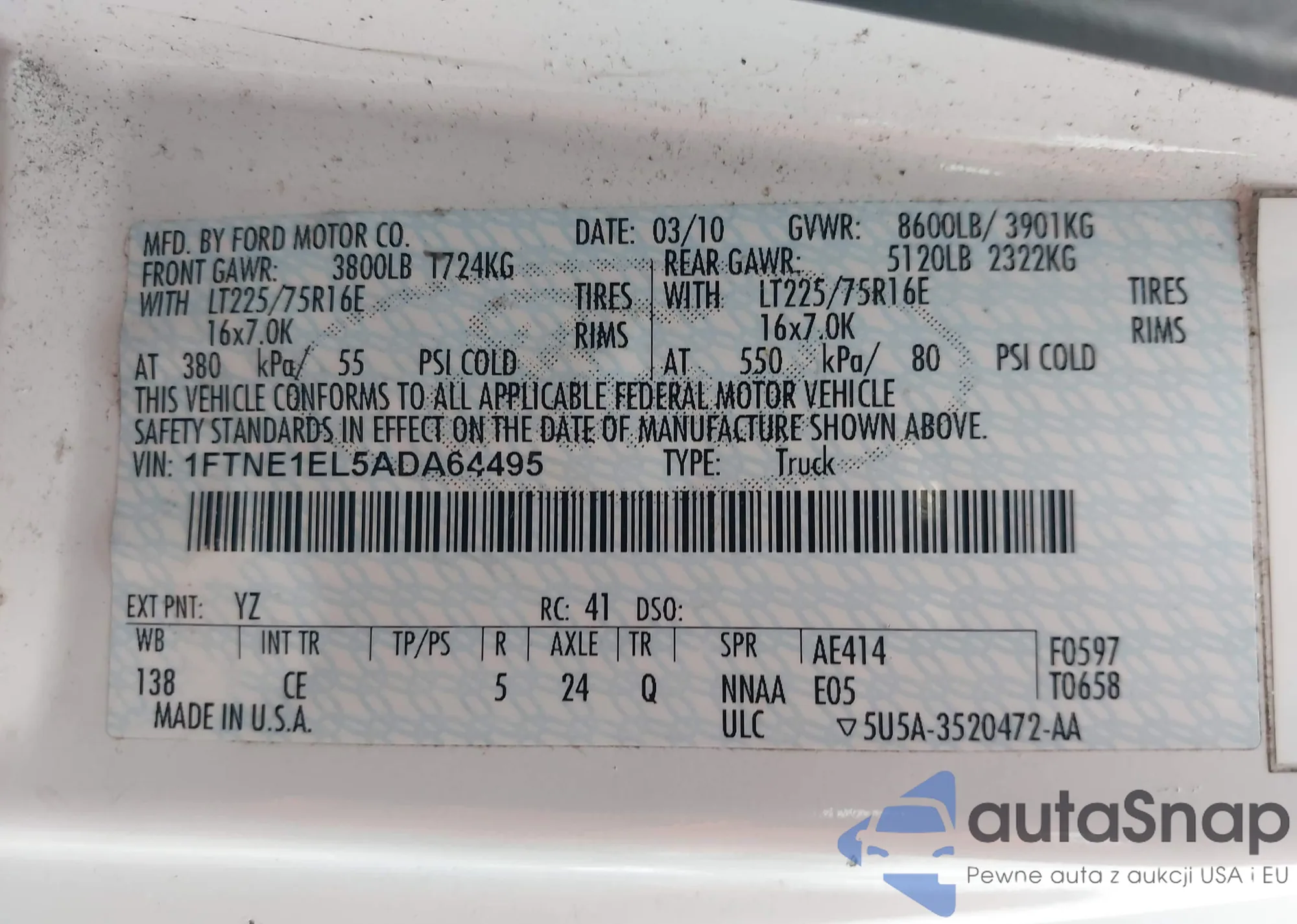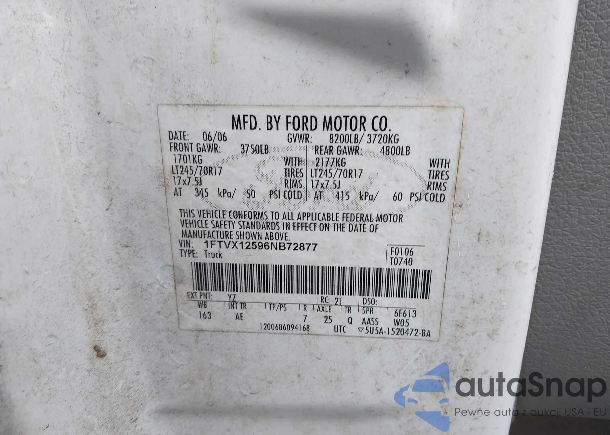 LOT: 44134420 VIN: 1FTVX12596NB72877
