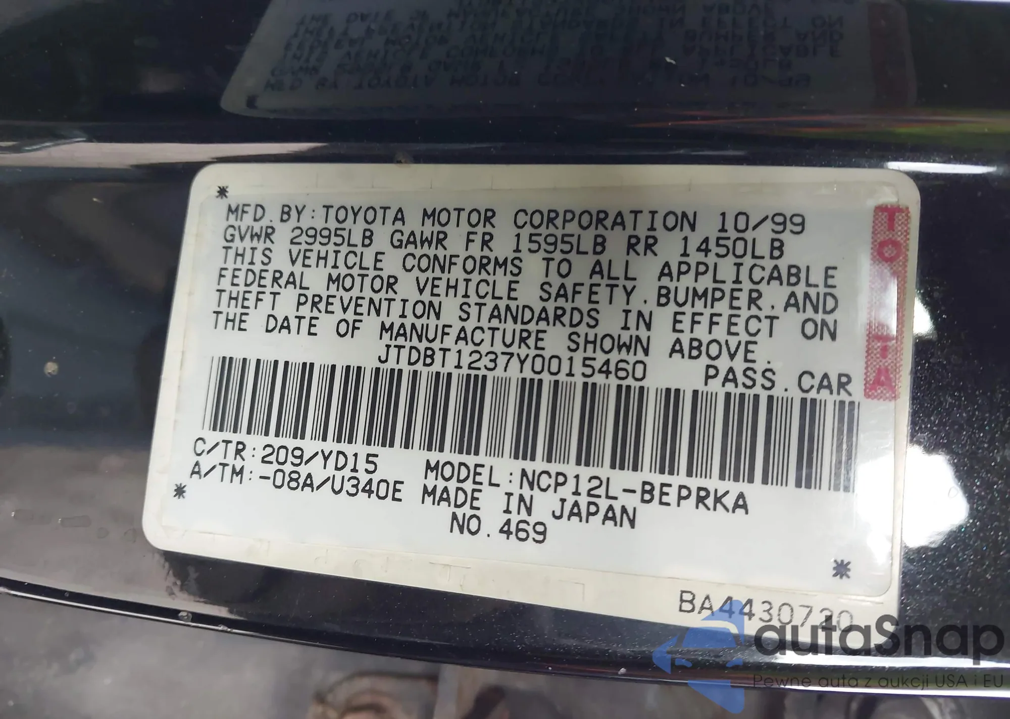 • VIN JTDBT1237Y0015460