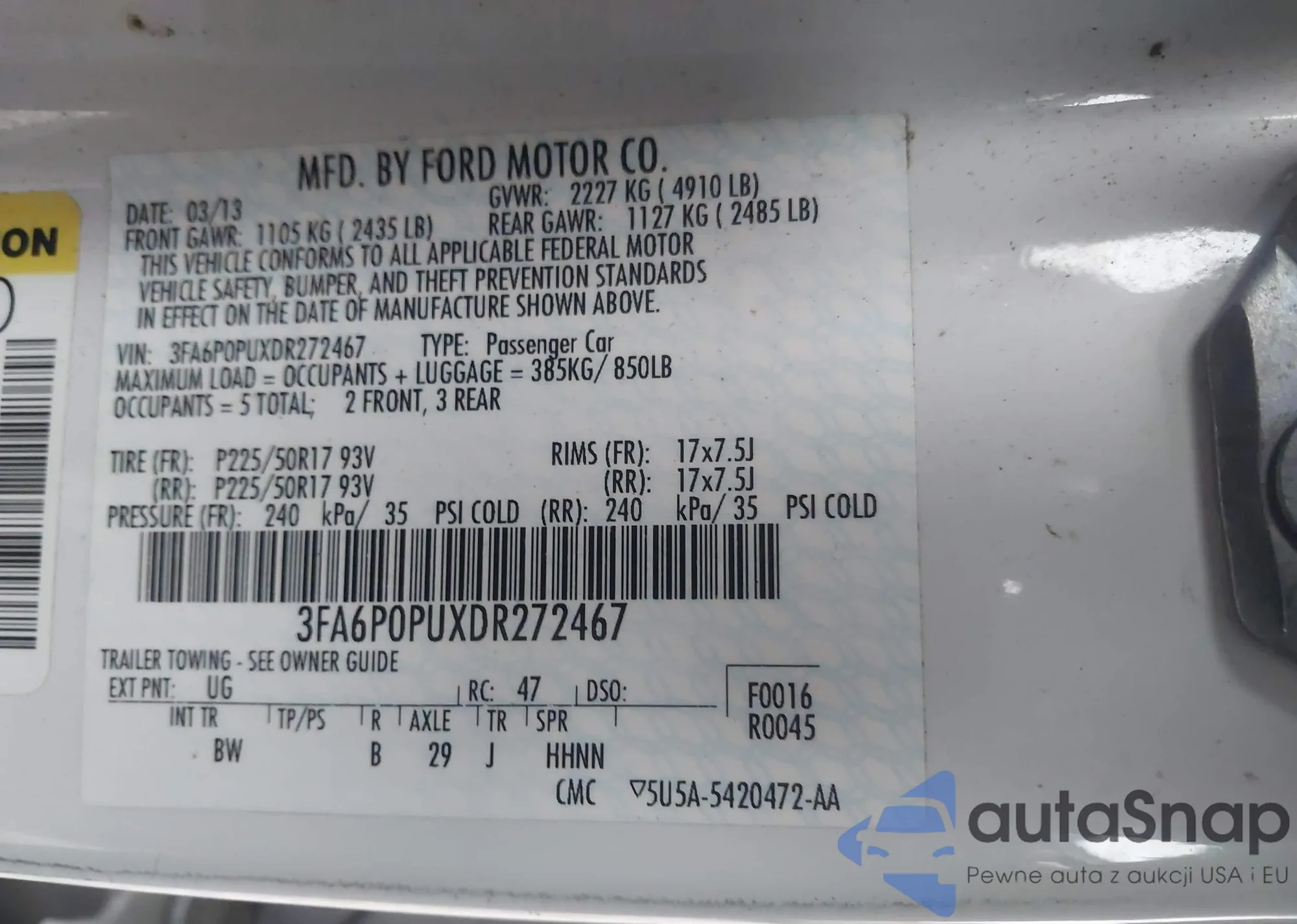 • VIN 3FA6P0PUXDR272467