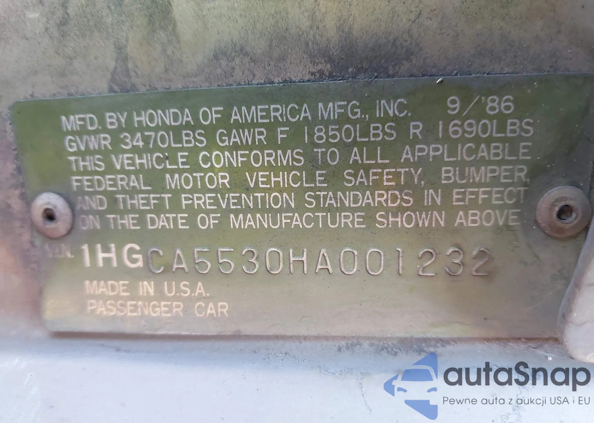 • VIN 5J6RE38798L007061