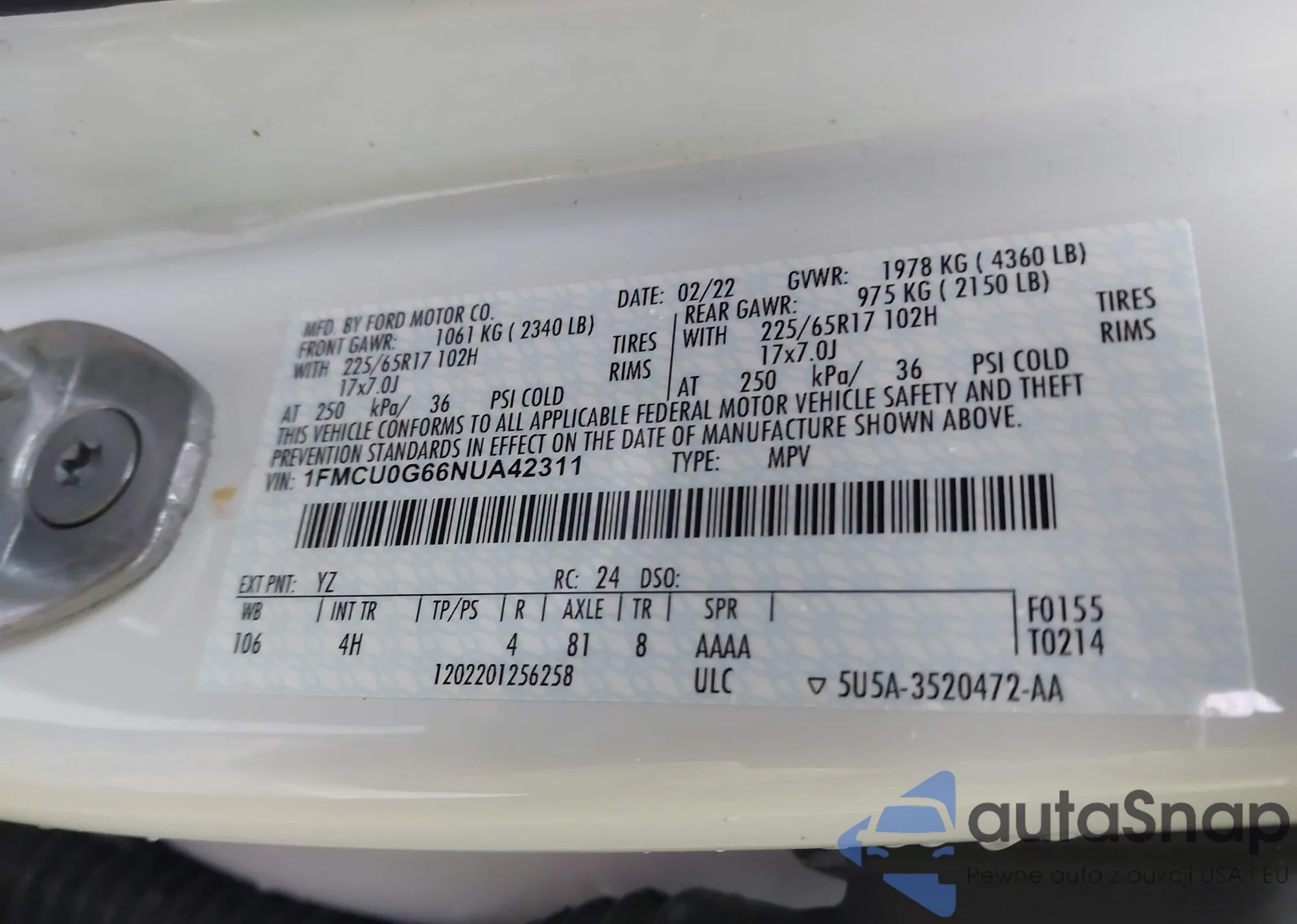 • VIN 1FM5K7F81FGA76845