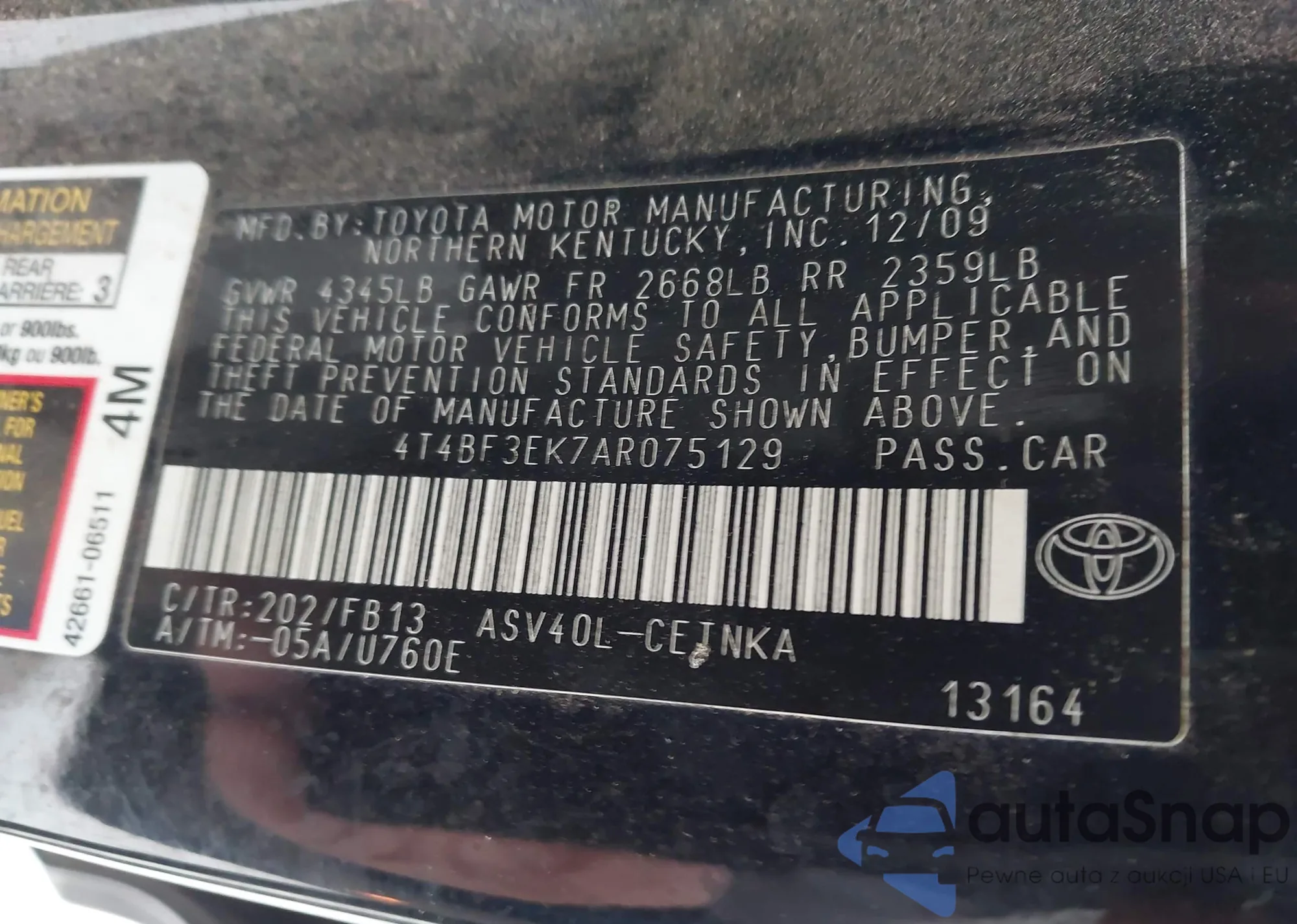 • VIN 4T4BF3EK7AR075129