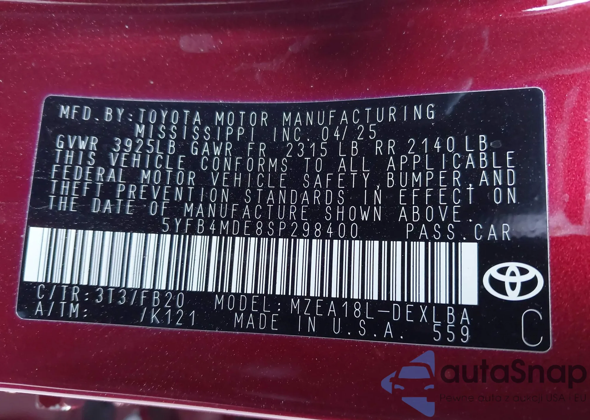• Lot number 43898044