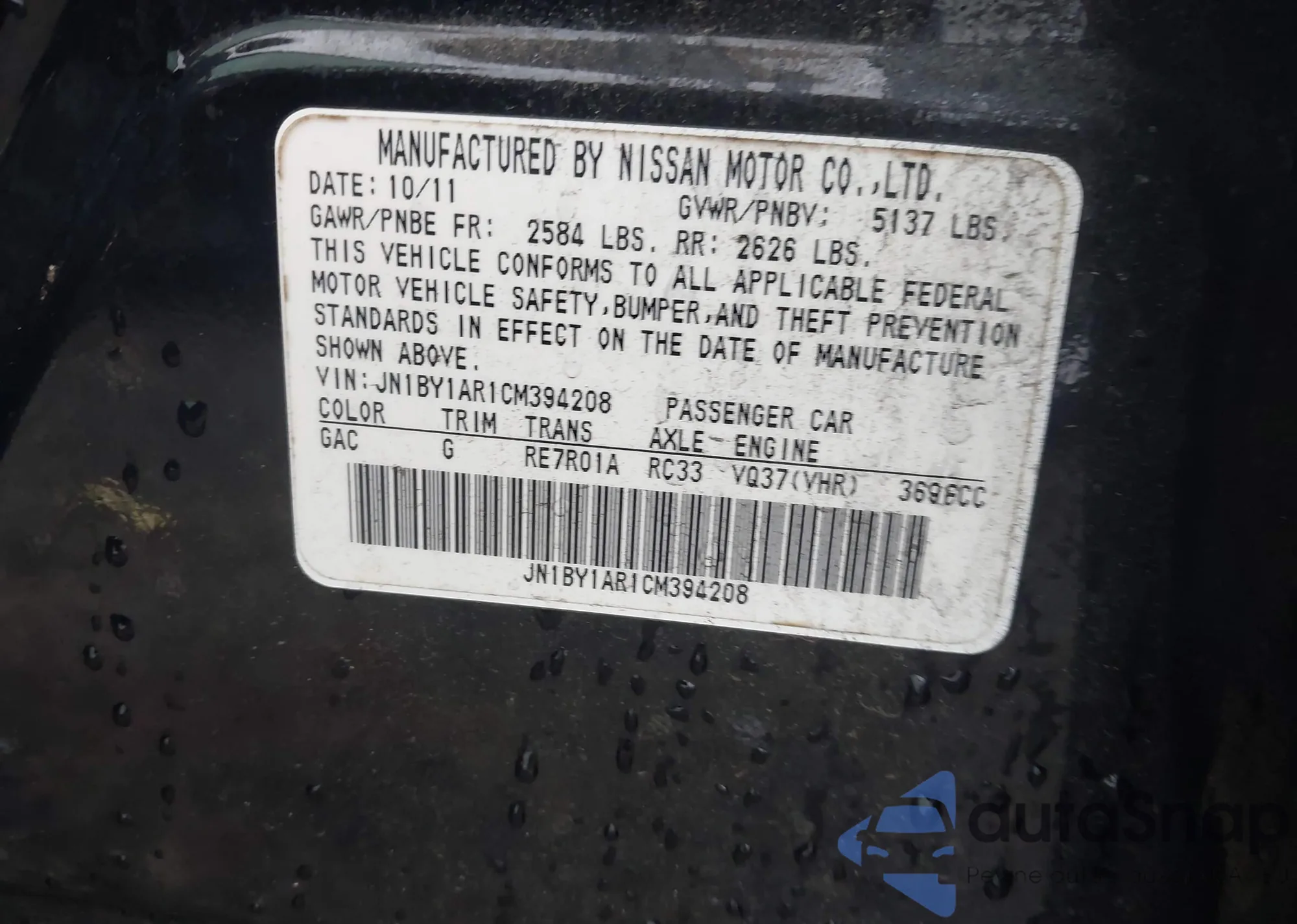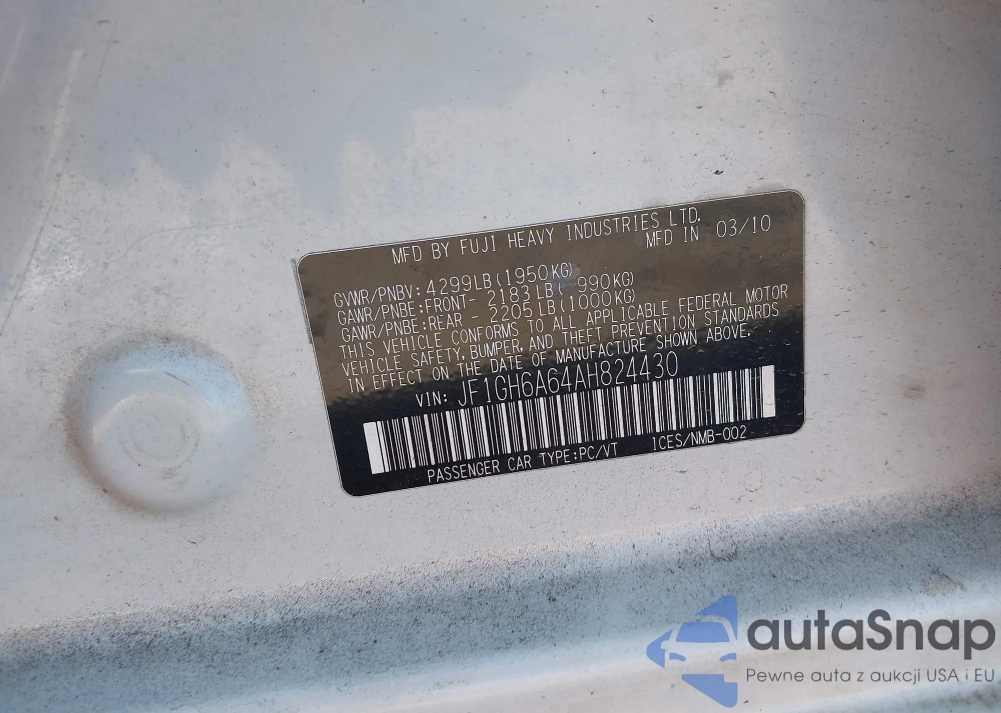 LOT: 43528321 VIN: JF1GH6A64AH824430