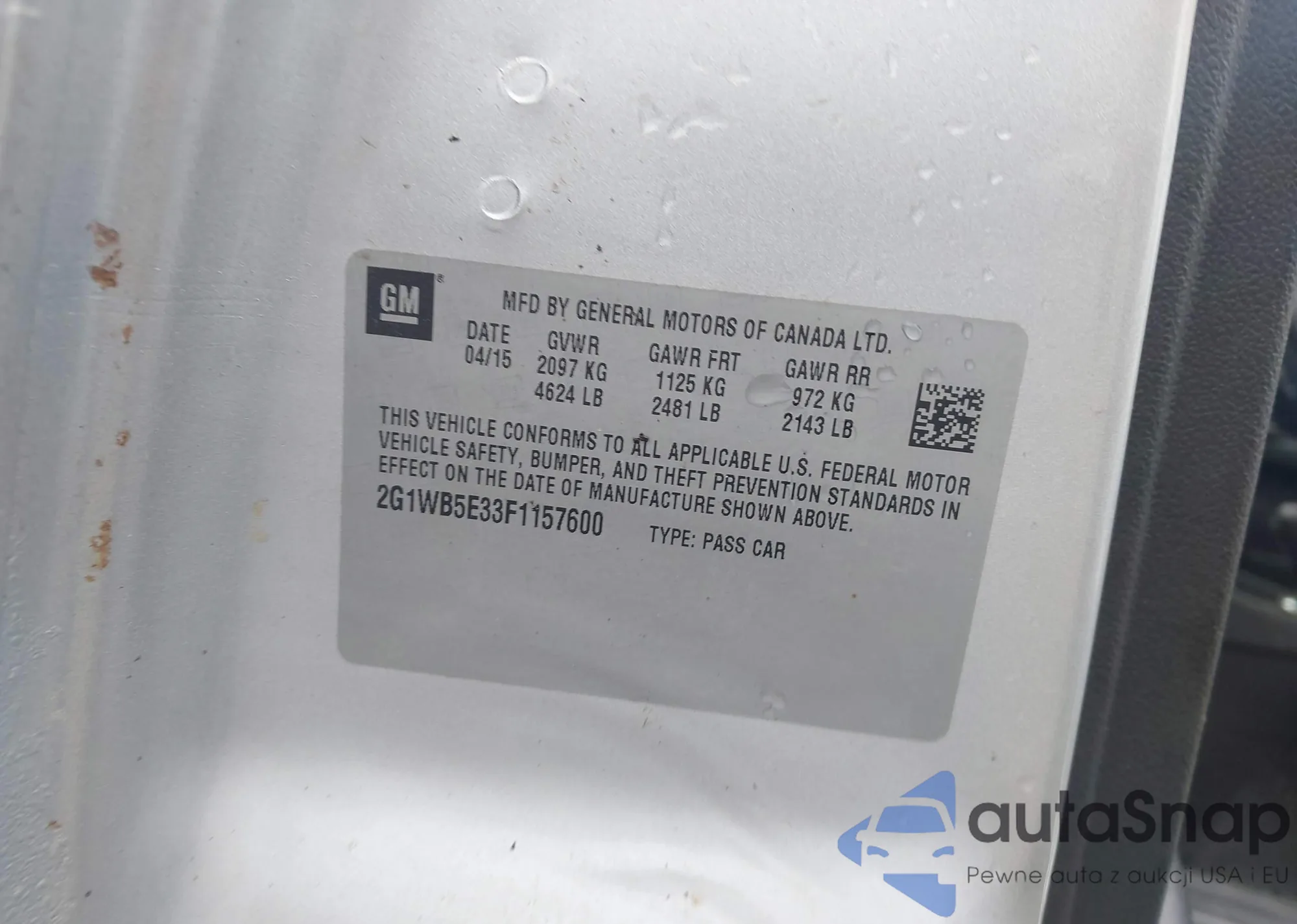 LOT: 44116072 VIN: 2G1WB5E33F1157600