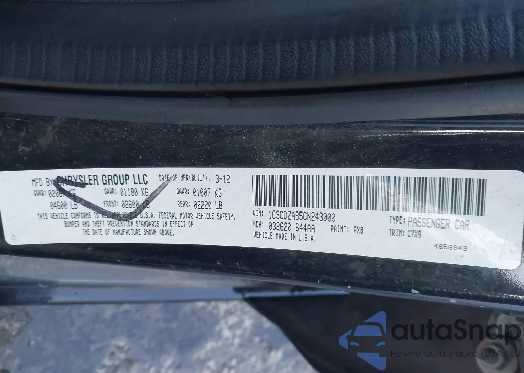 LOT: 43941232 VIN: 1C3CDZAB5CN243000
