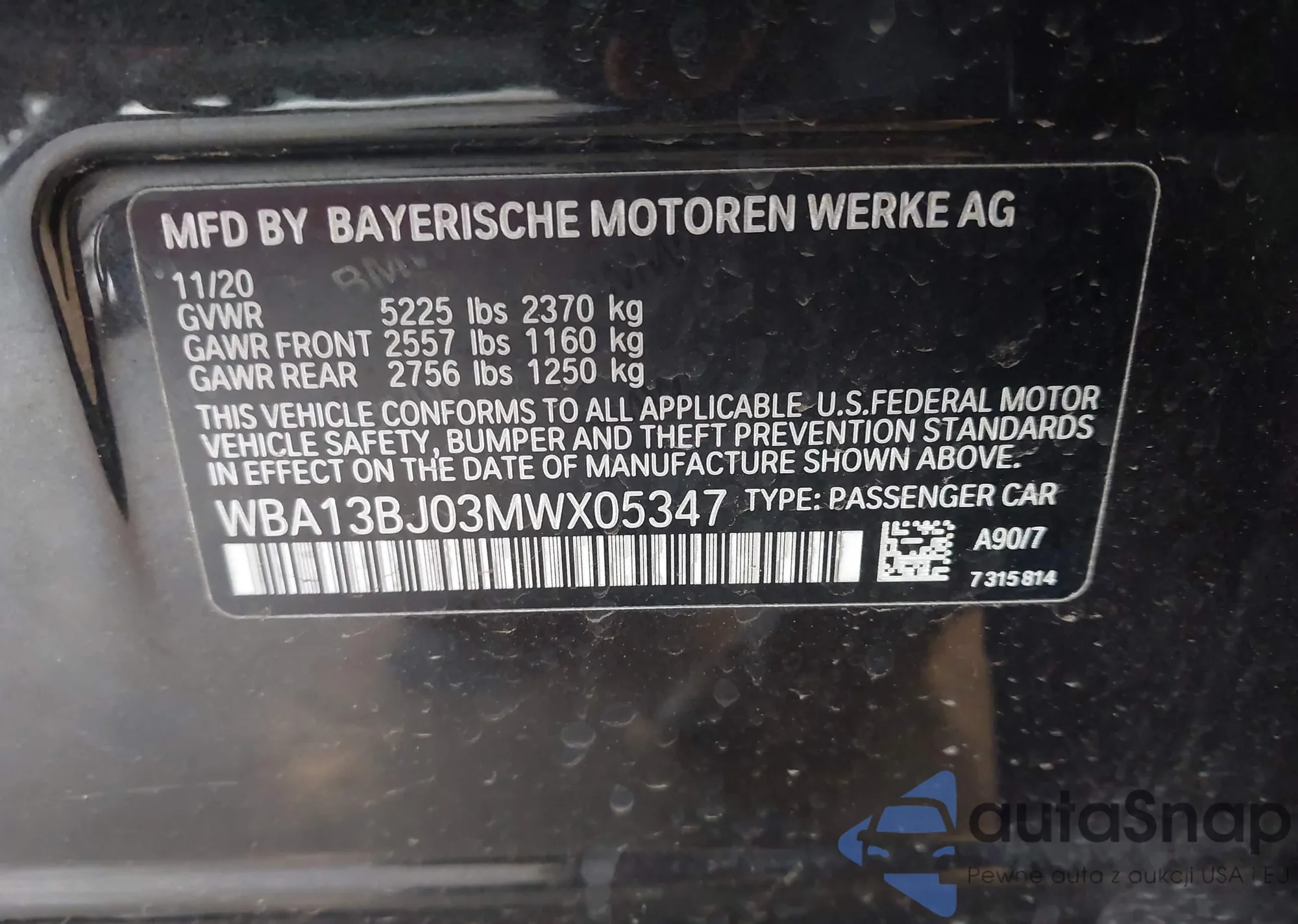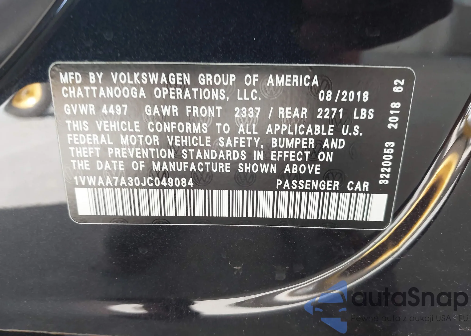LOT: 44005077 VIN: 1VWAA7A30JC049084
