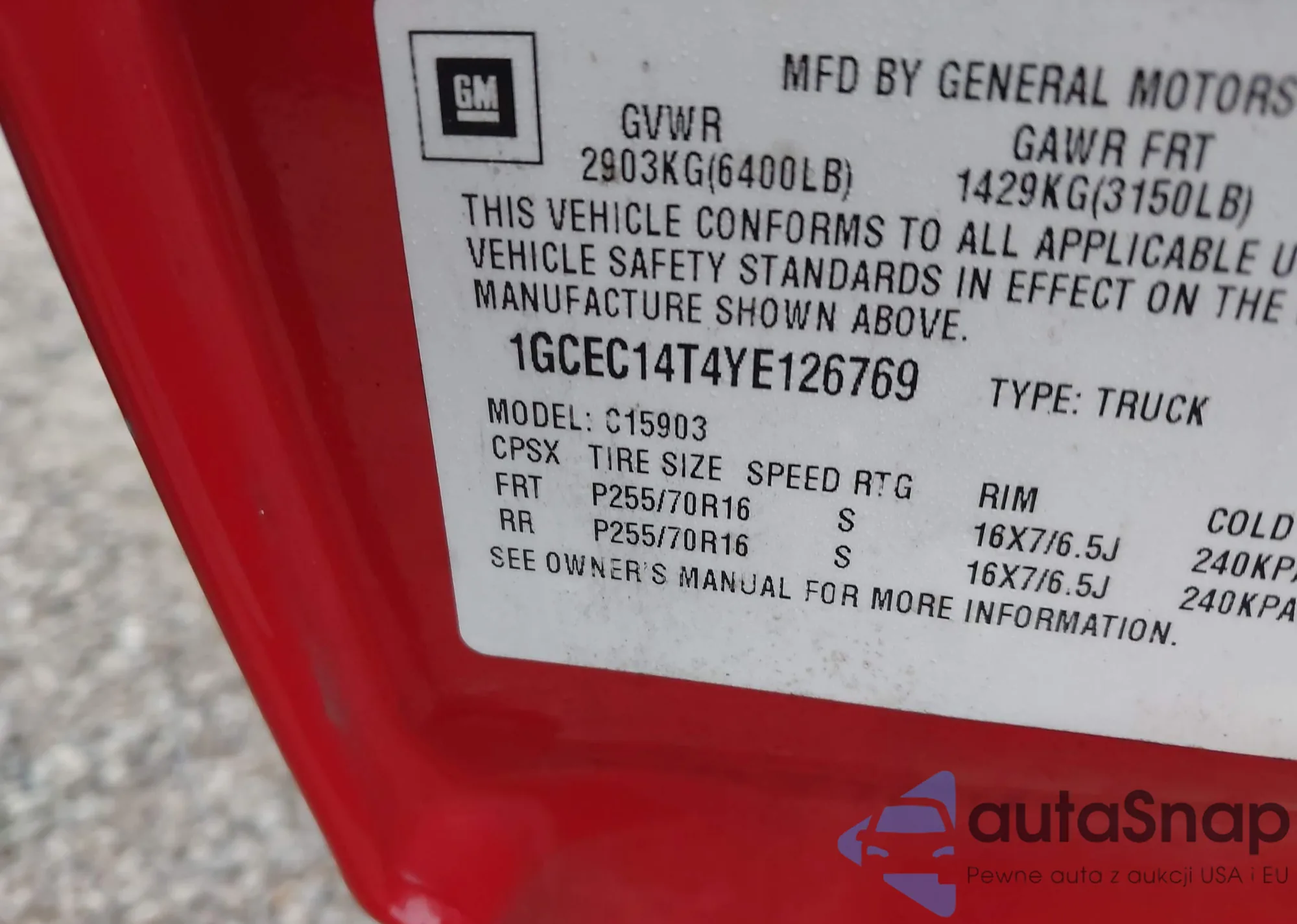 • VIN 1GCEC14T4YE126769