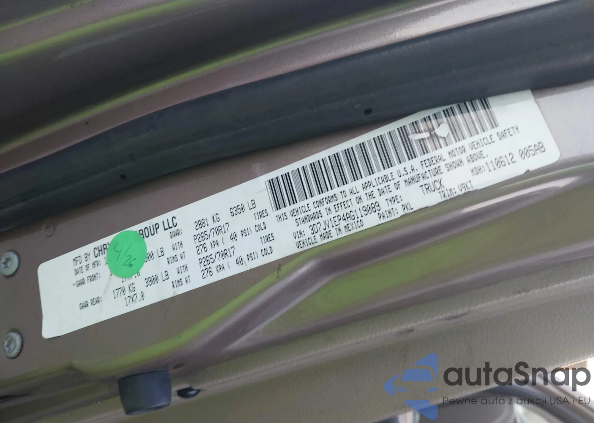 LOT: 44020503 VIN: 1N4AL2EP8AC144866
