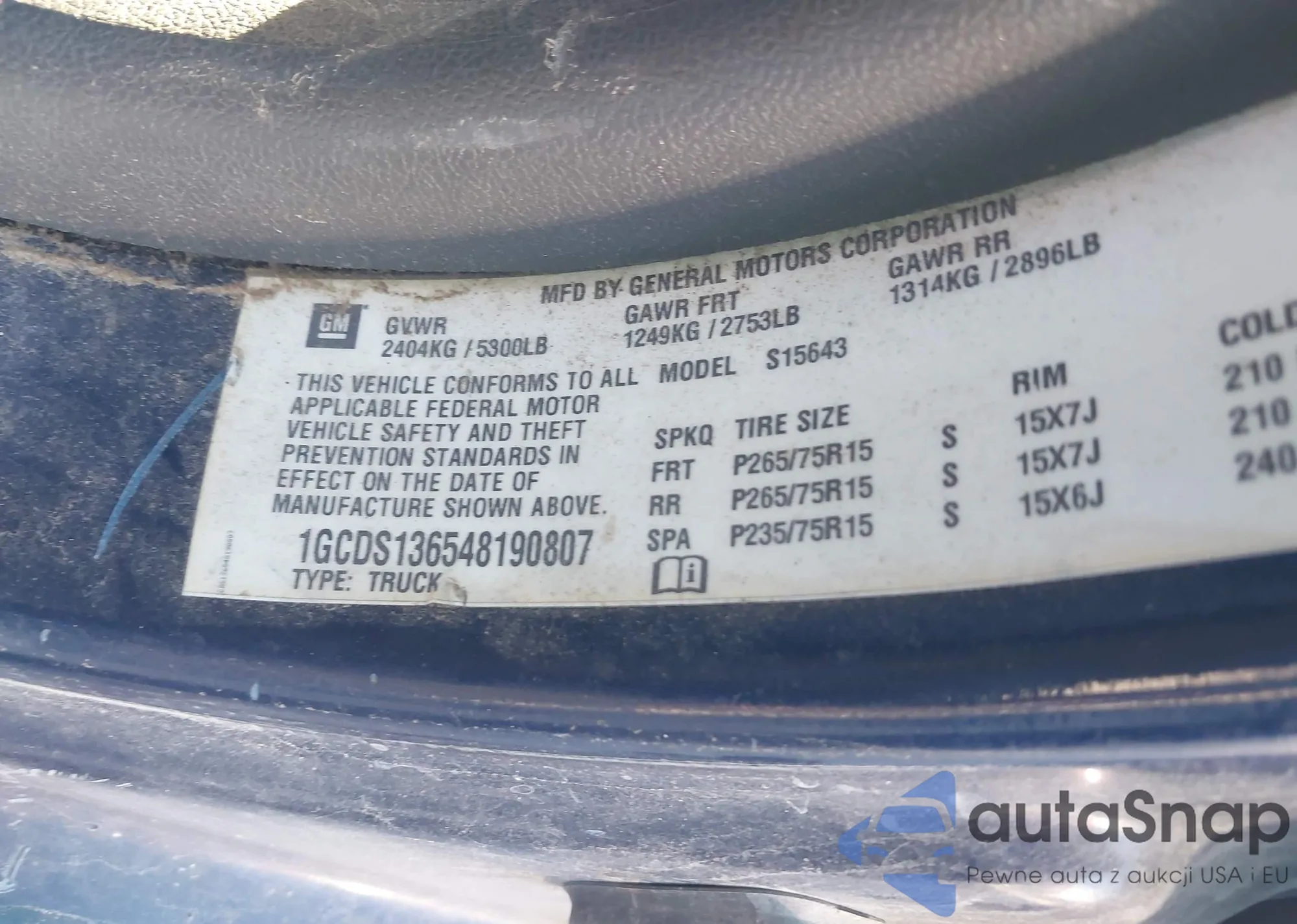 LOT: 43905736 VIN: 1GCDS136548190807