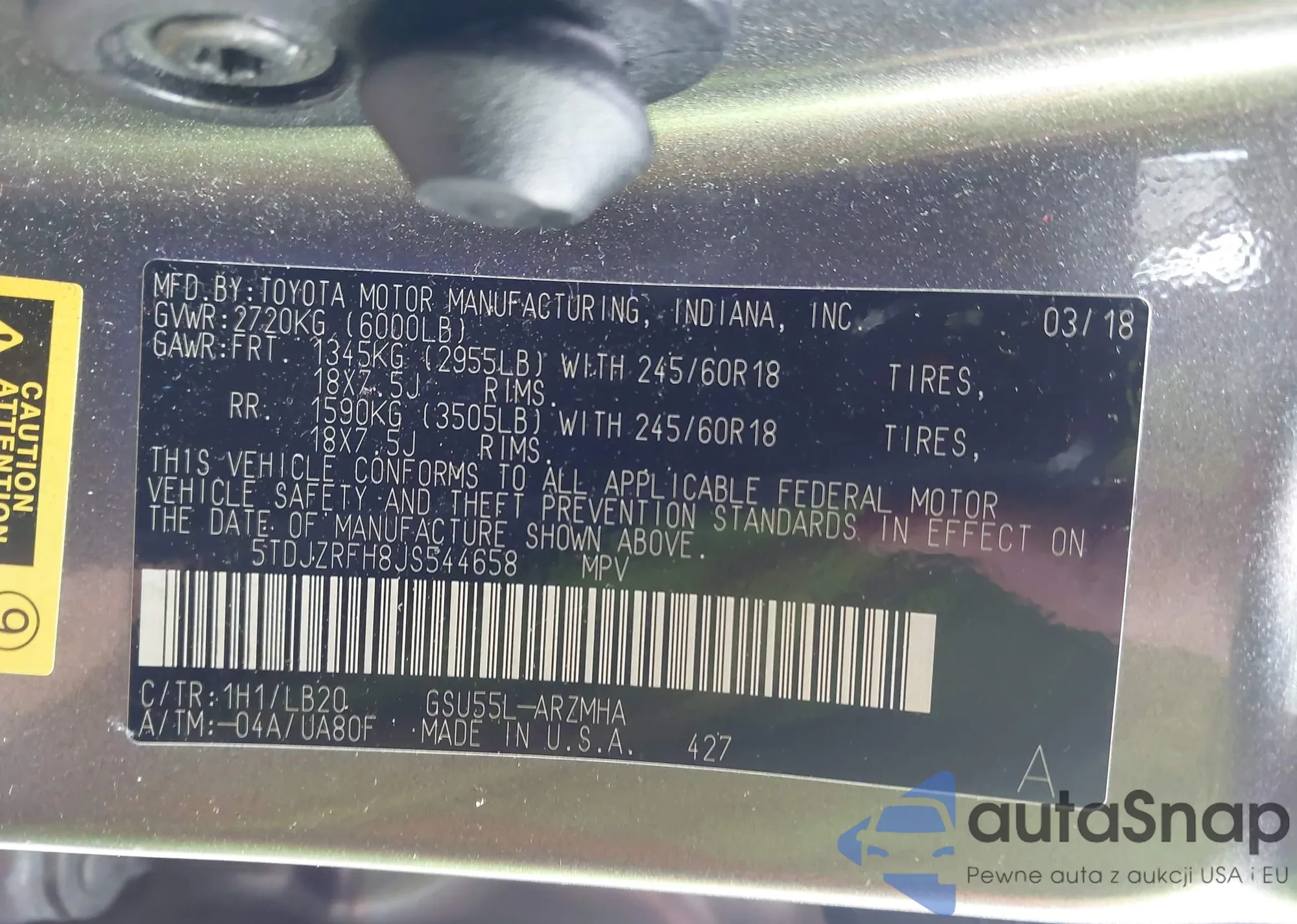 LOT: 43926854 VIN: 5TDJZRFH8JS544658
