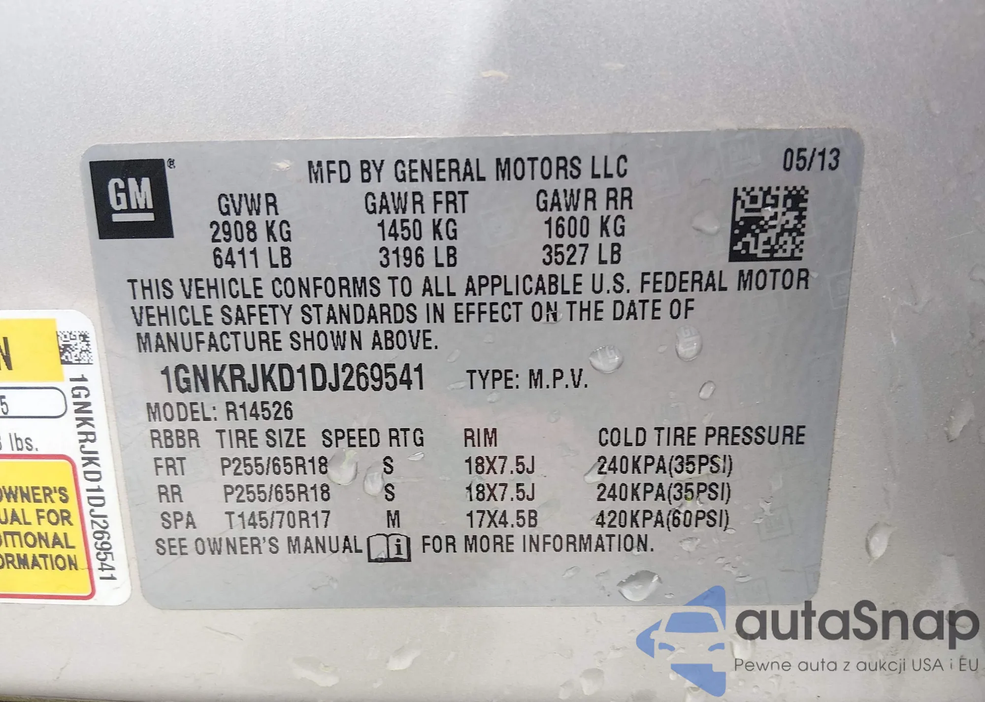 LOT: 43907899 VIN: 5FNYF3H23DB038029