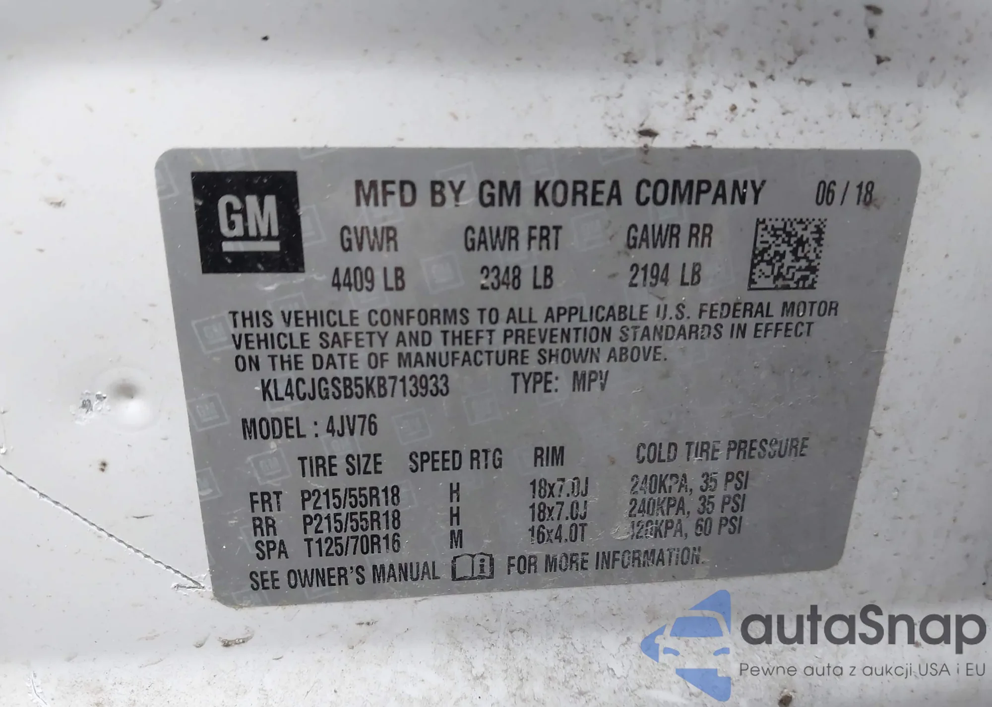 LOT: 43922162 VIN: 1C4PJMCS5GW277024