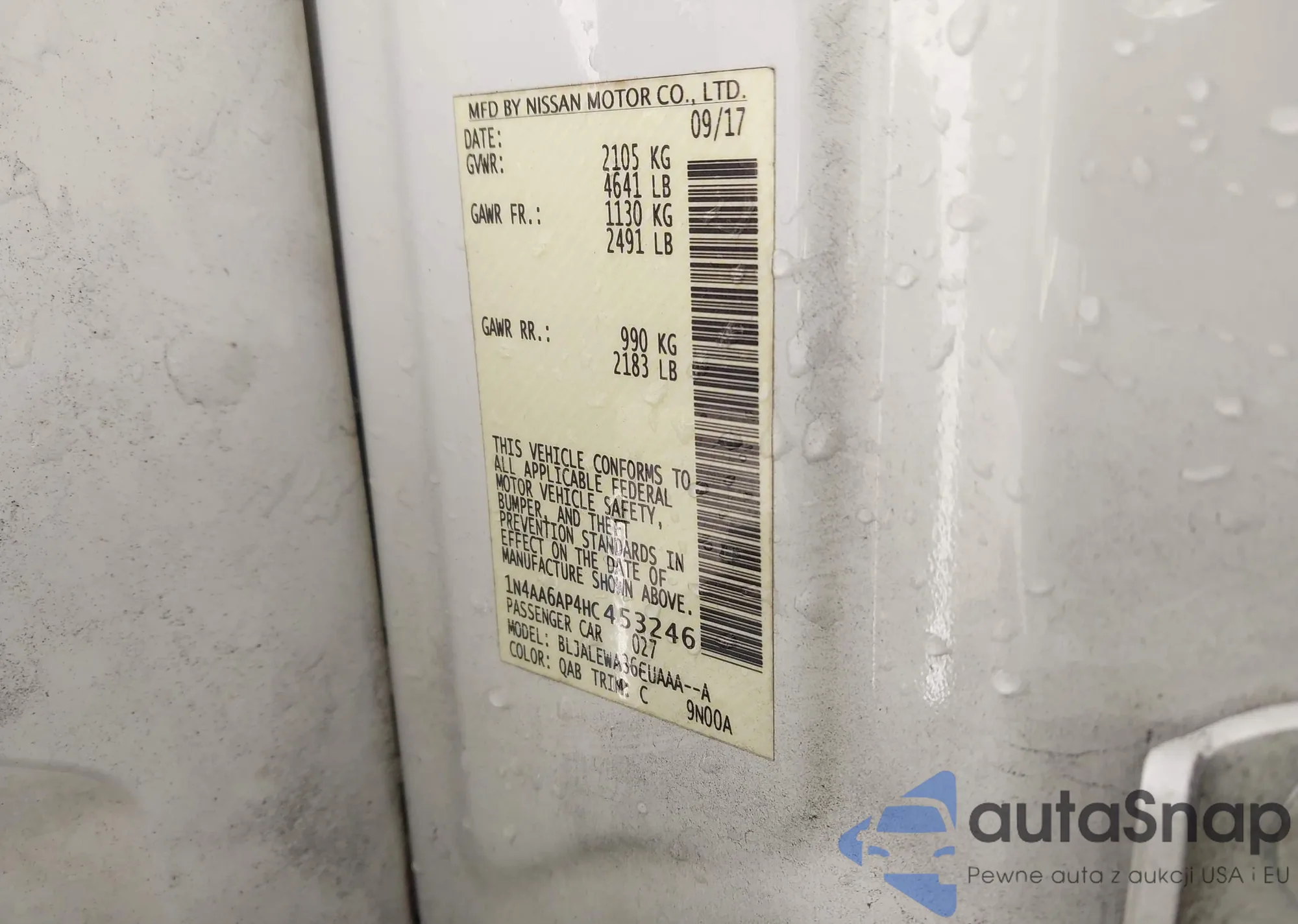 LOT: 43873563 VIN: 1N4AA6AP4HC453246