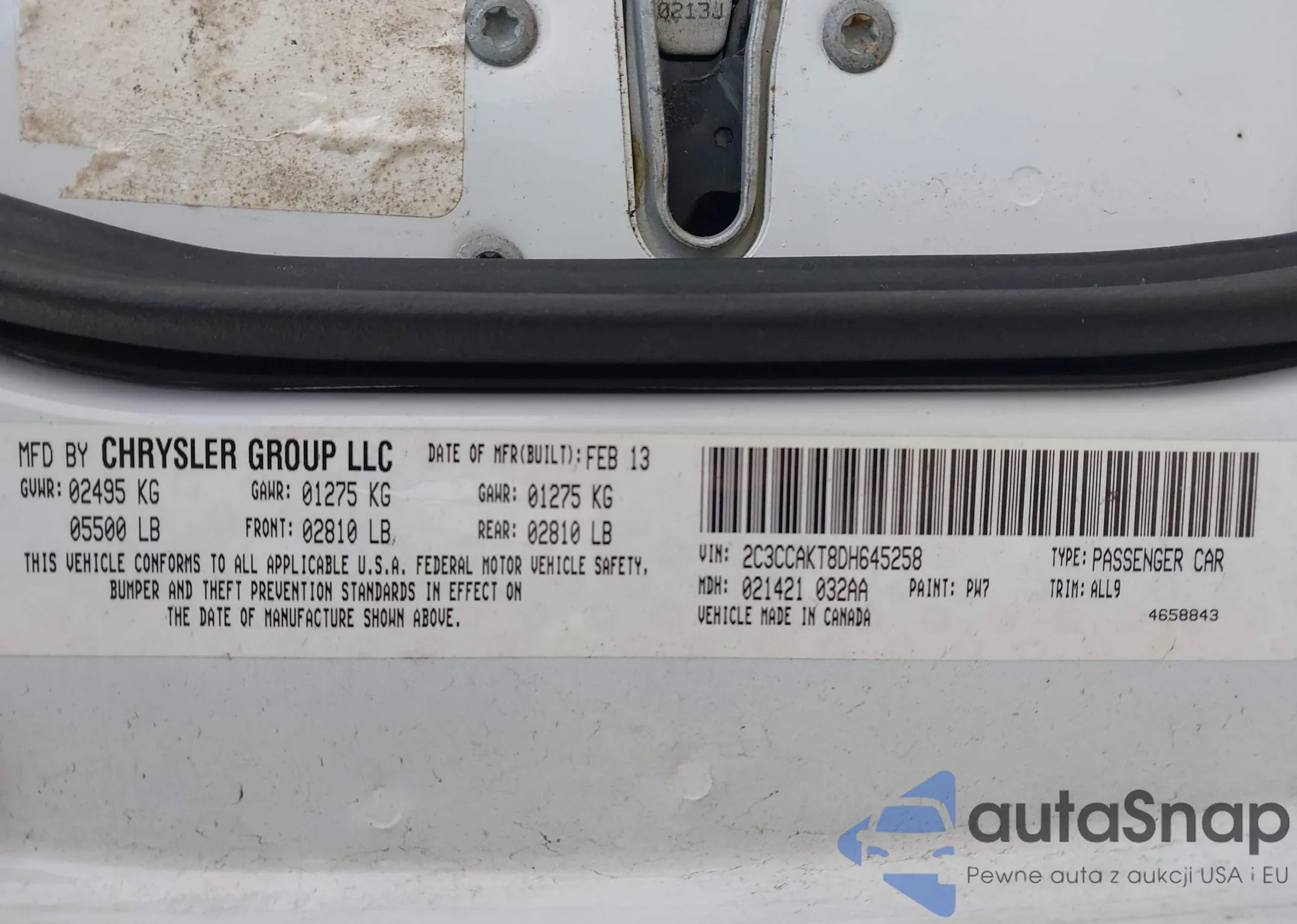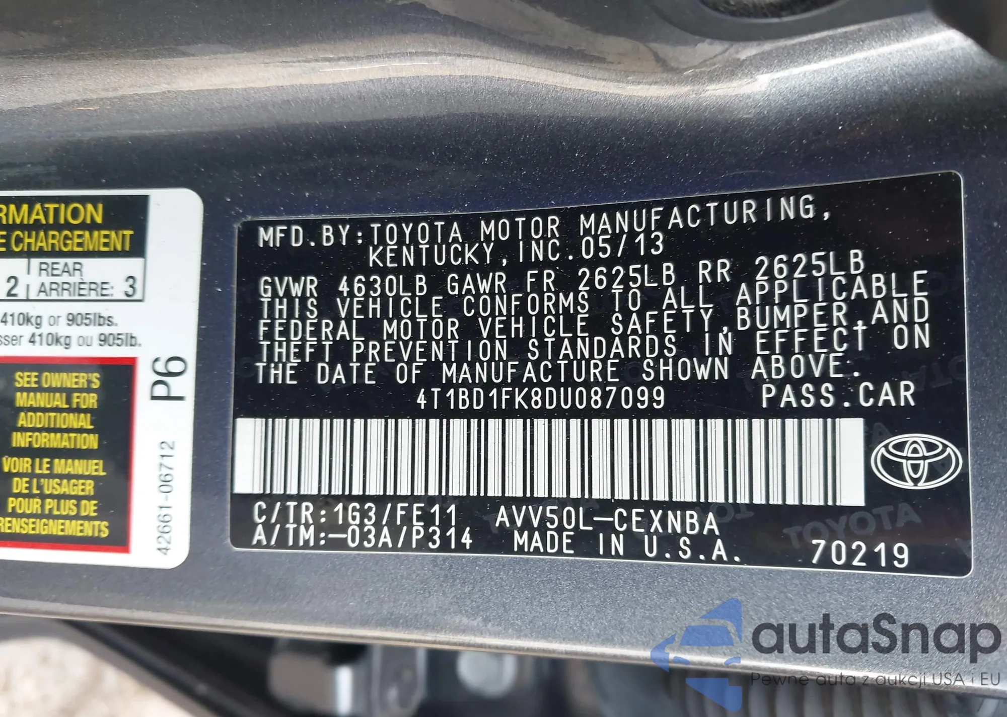 • VIN 4T1BD1FK8DU087099