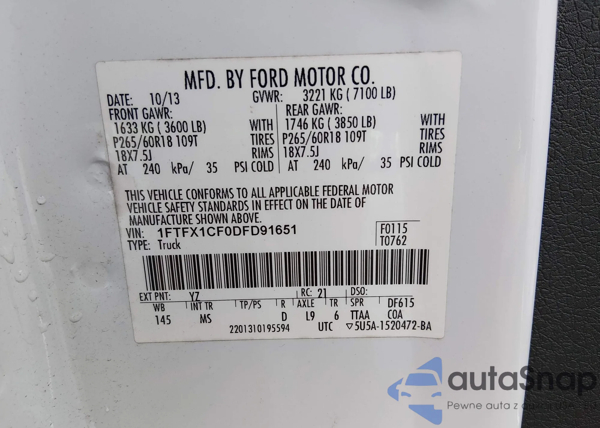 • VIN 1FTFX1CF0DFD91651