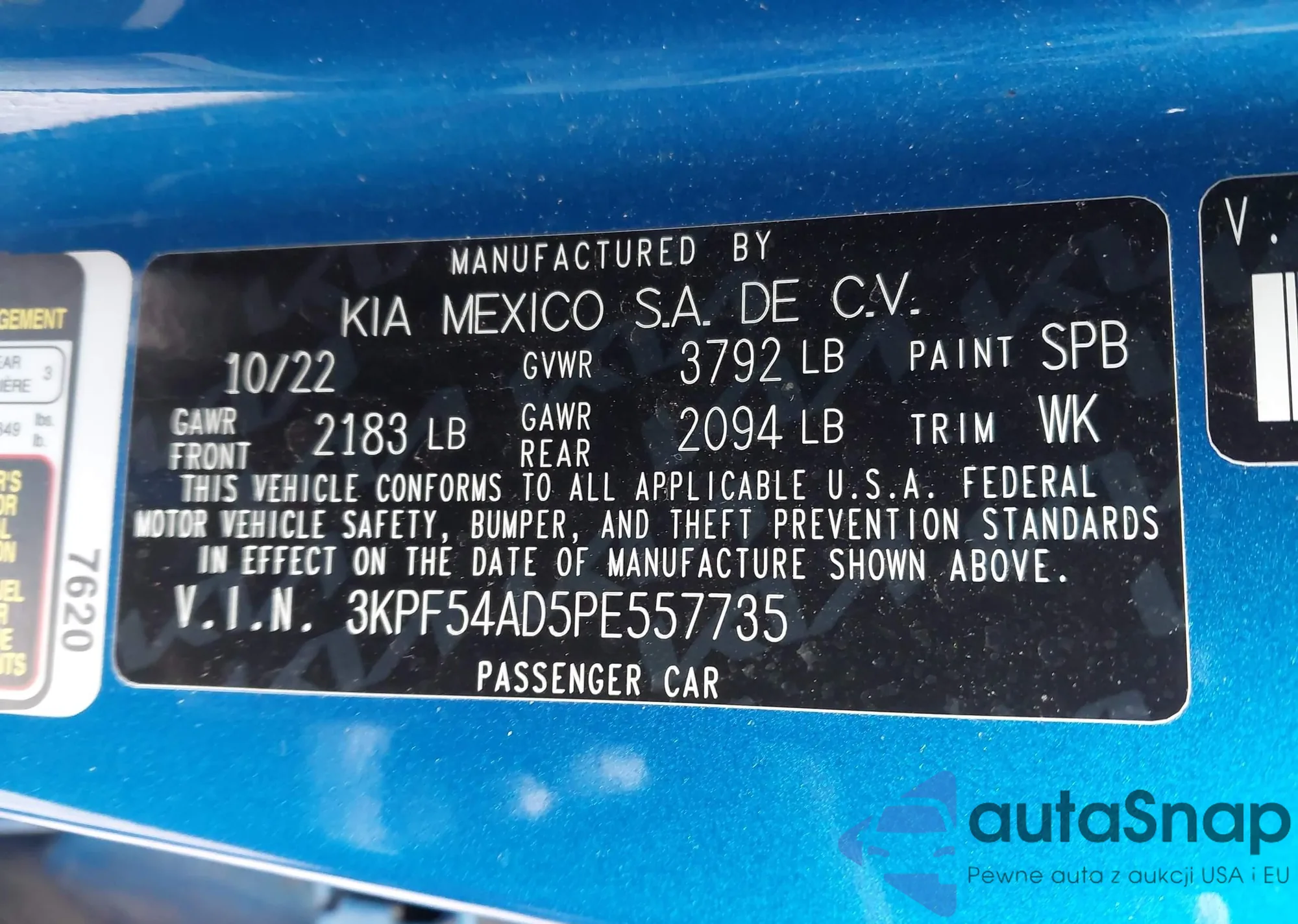 • VIN 3KPF54AD5PE557735