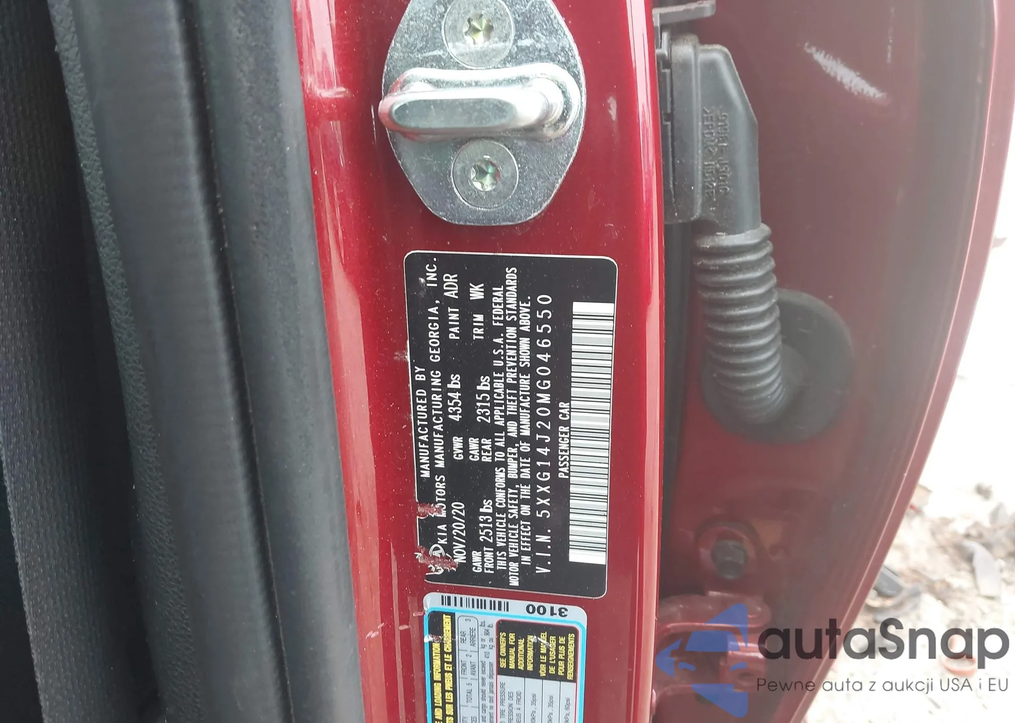 • VIN 5XXG14J20MG046550