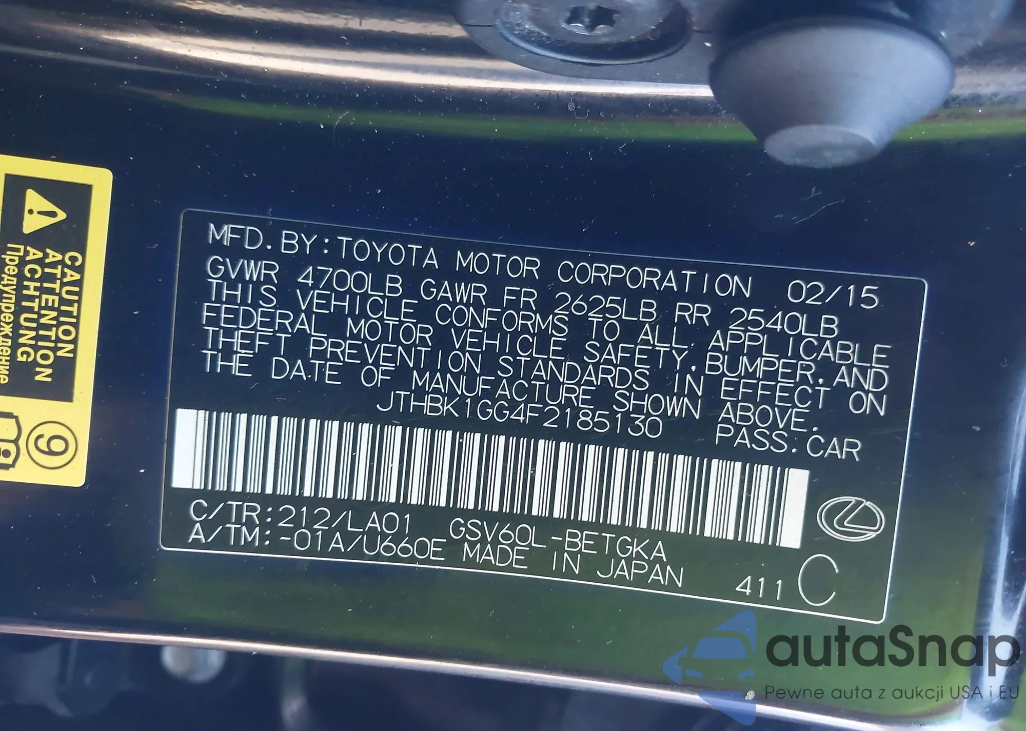 LOT: 44095024 VIN: JTHBK1GG4F2185130