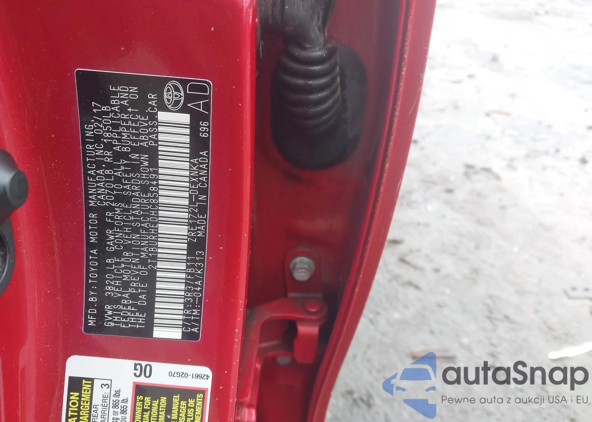 LOT: 43813590 VIN: 2T1BURHE0HC858491