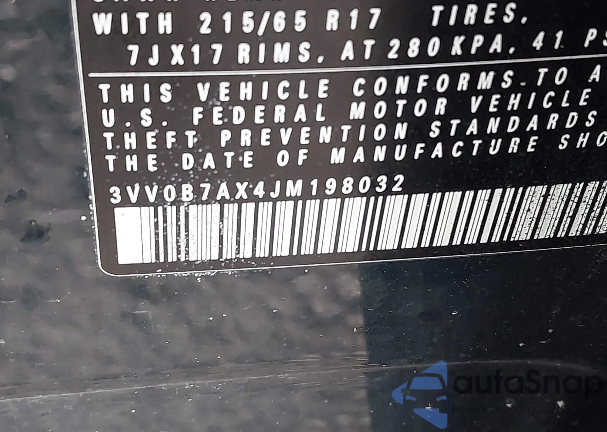 • VIN 3VV0B7AX4JM198032