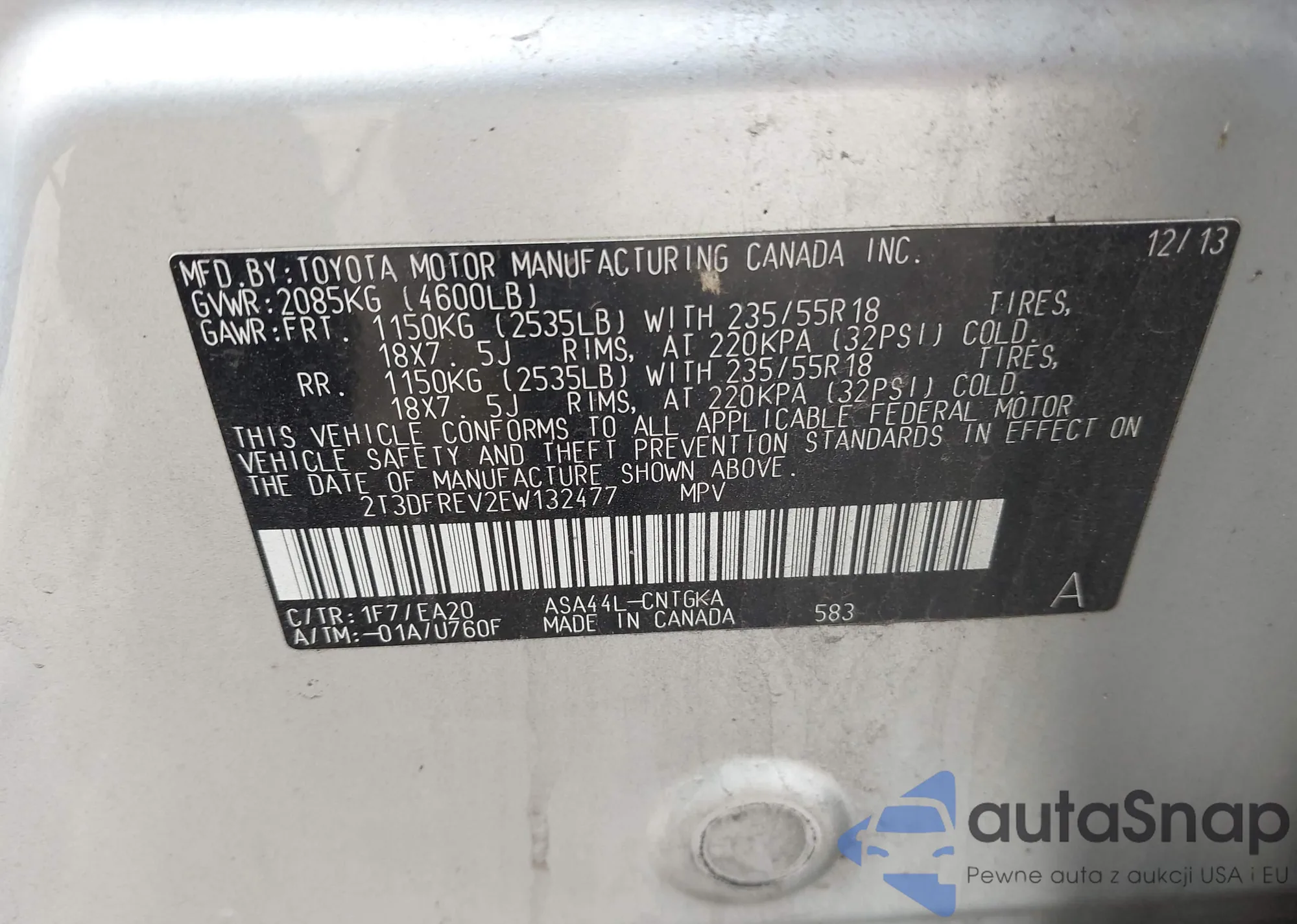 • VIN 2T3DFREV2EW132477