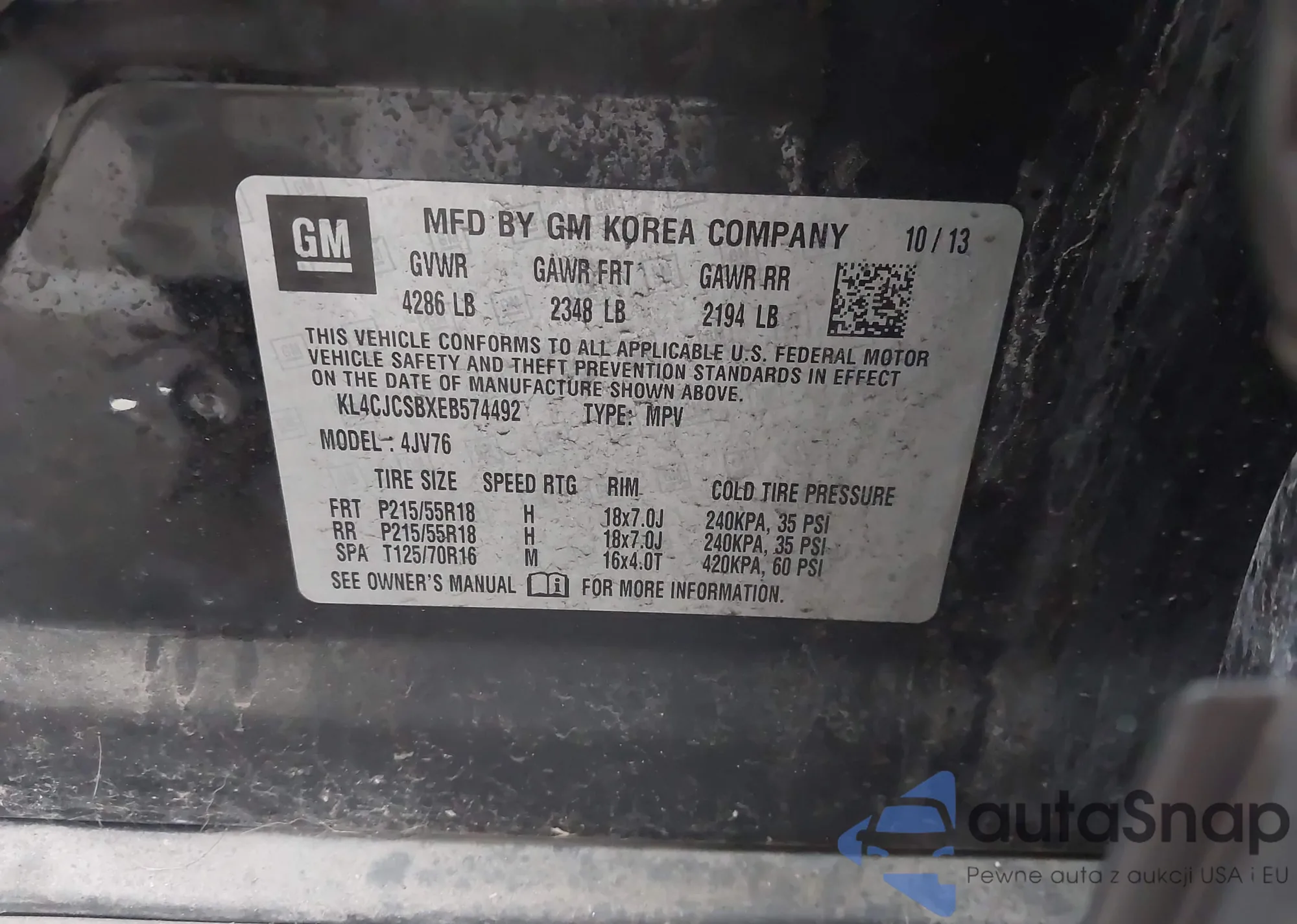 • VIN KL4CJCSBXEB574492